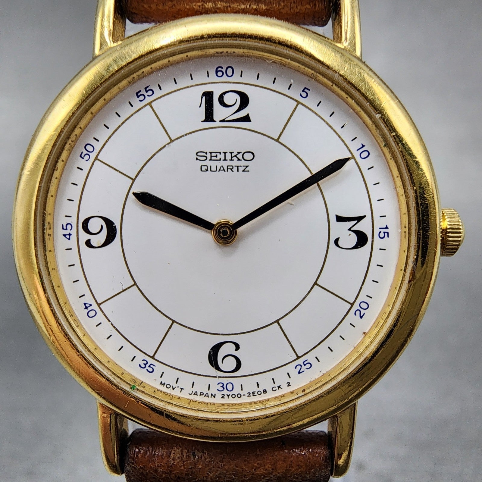 Seiko Watch Women 26mm White Dial Gold Tone Round 2y00-0C10 New Battery