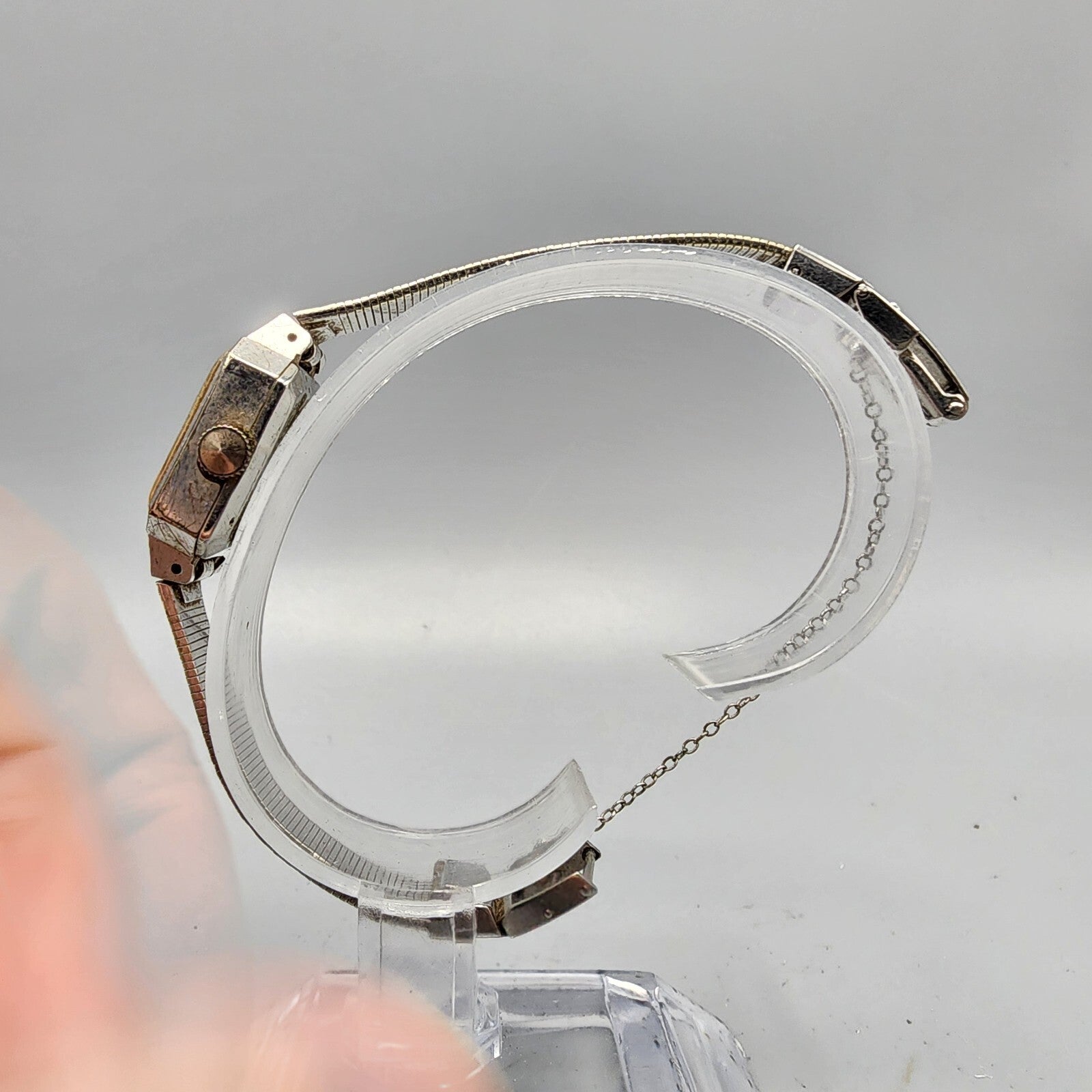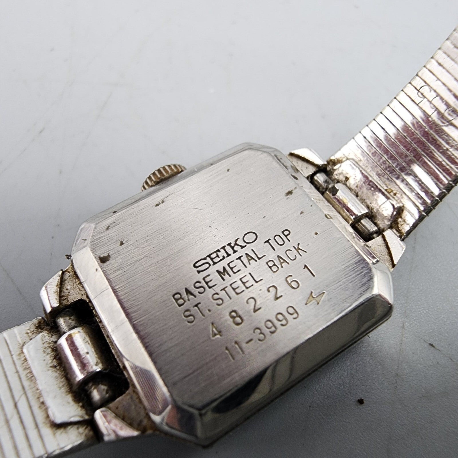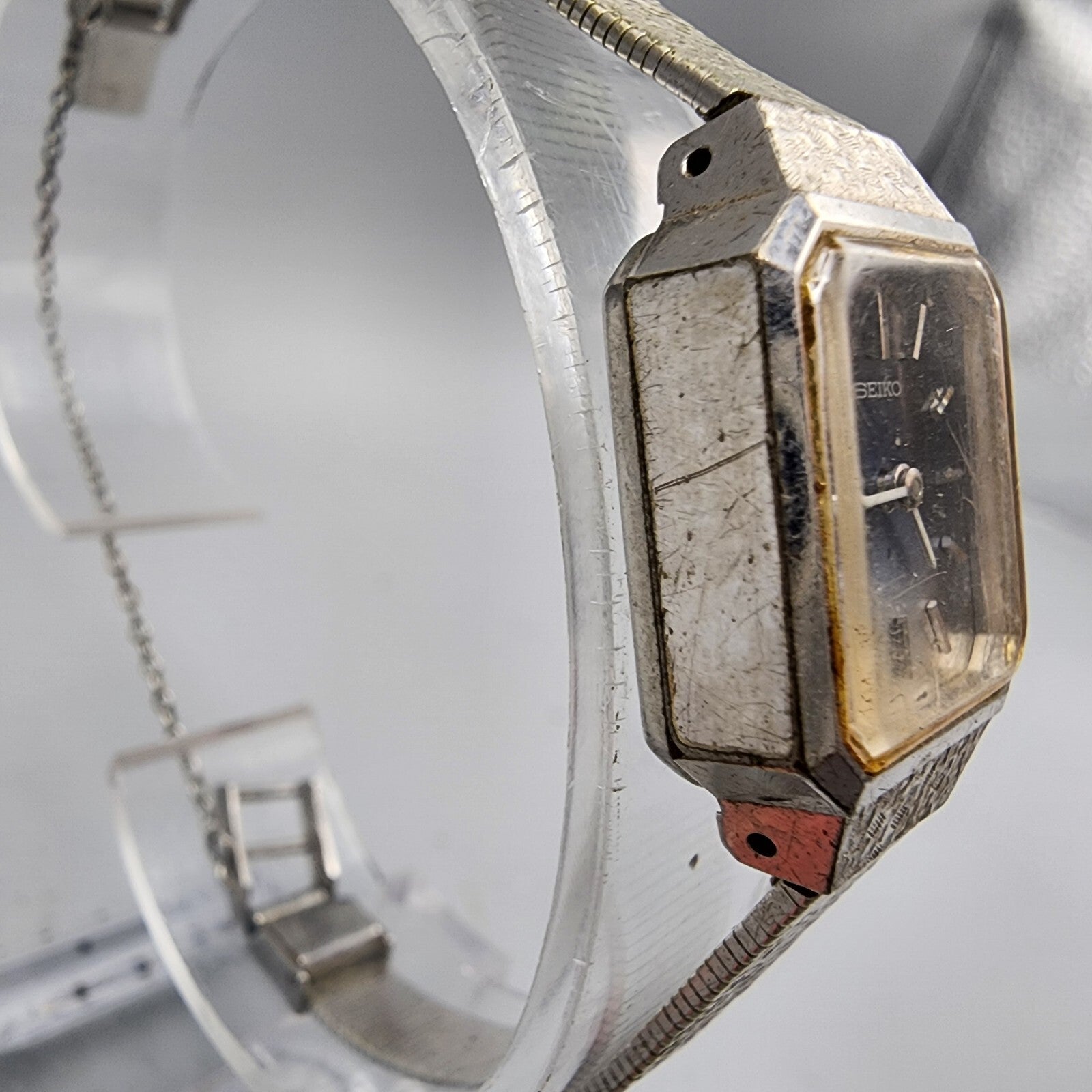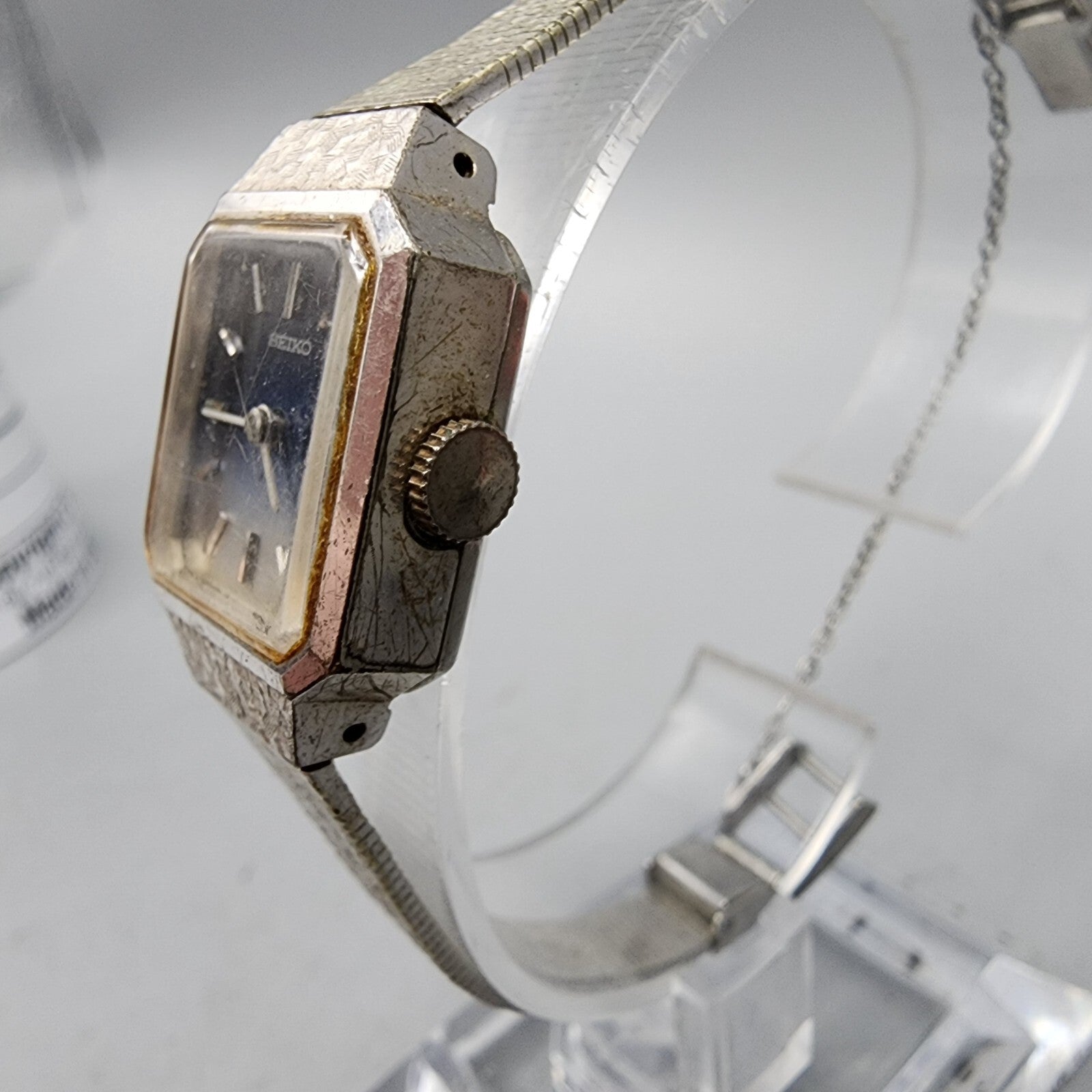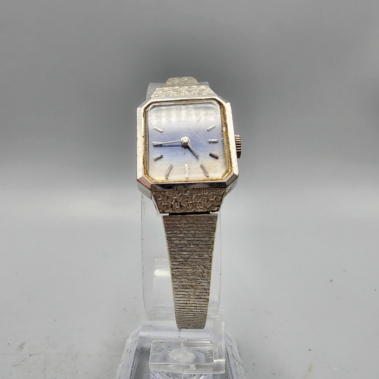 Seiko Watch Women Silver Tone Blue&White Dial Manual Wind 18mm Rectangle Runs