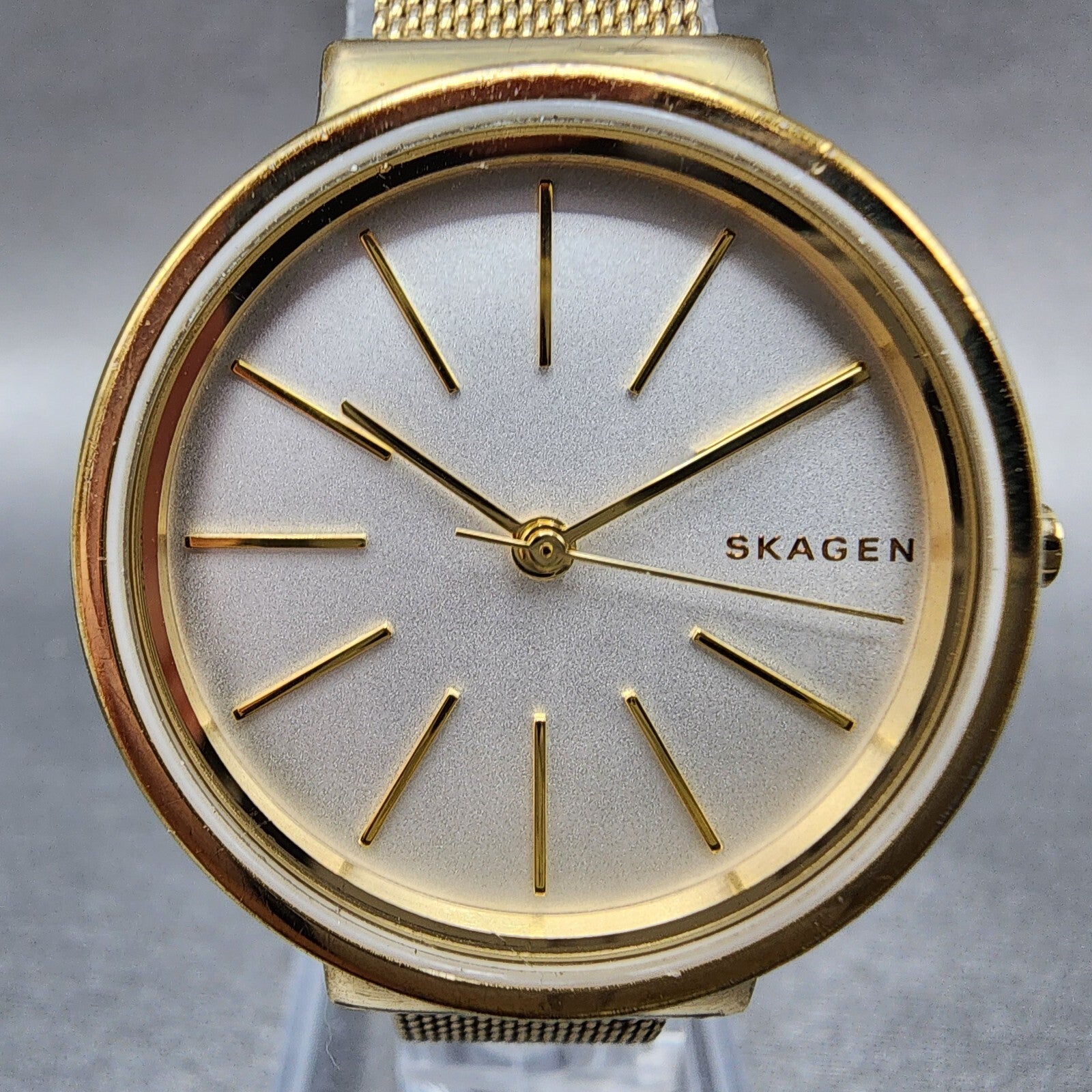 Skagen Ancher Watch Women 30mm Silver Dial Gold Tone Round SKW2477 New Battery