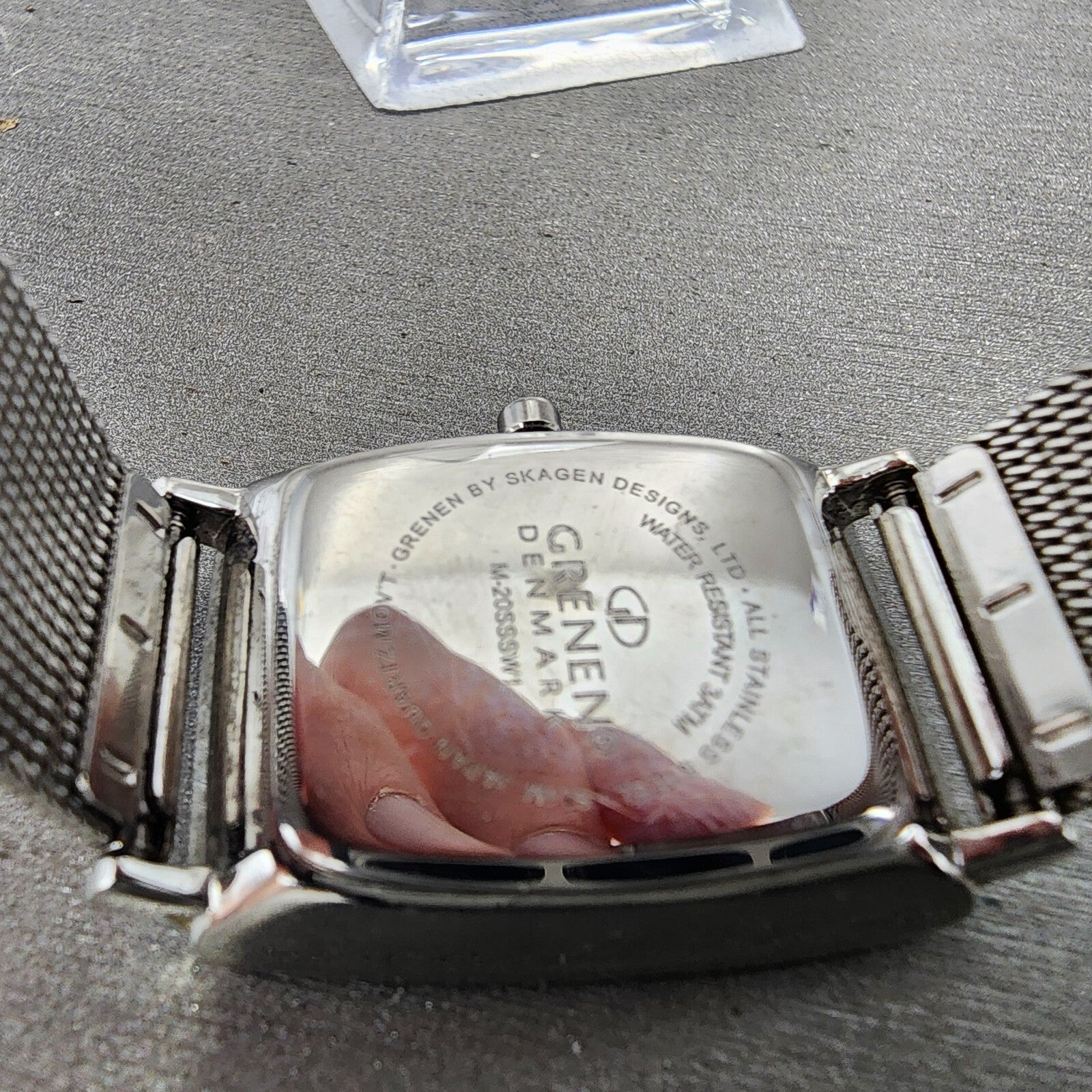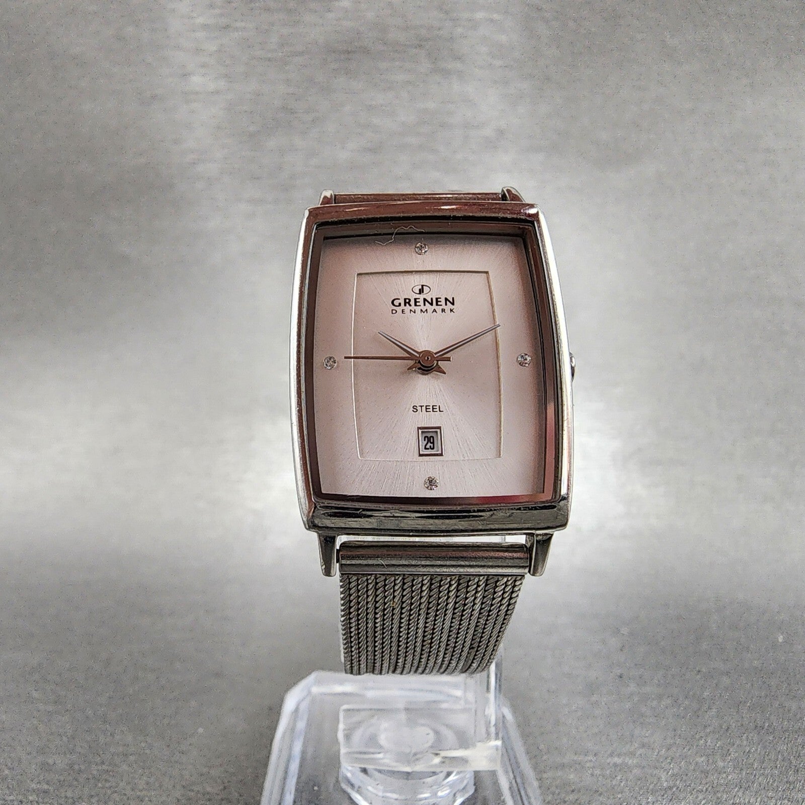 Skagen Grenen Tank Watch Women 23mm Silver Dial Steel Date Rectangle New Battery