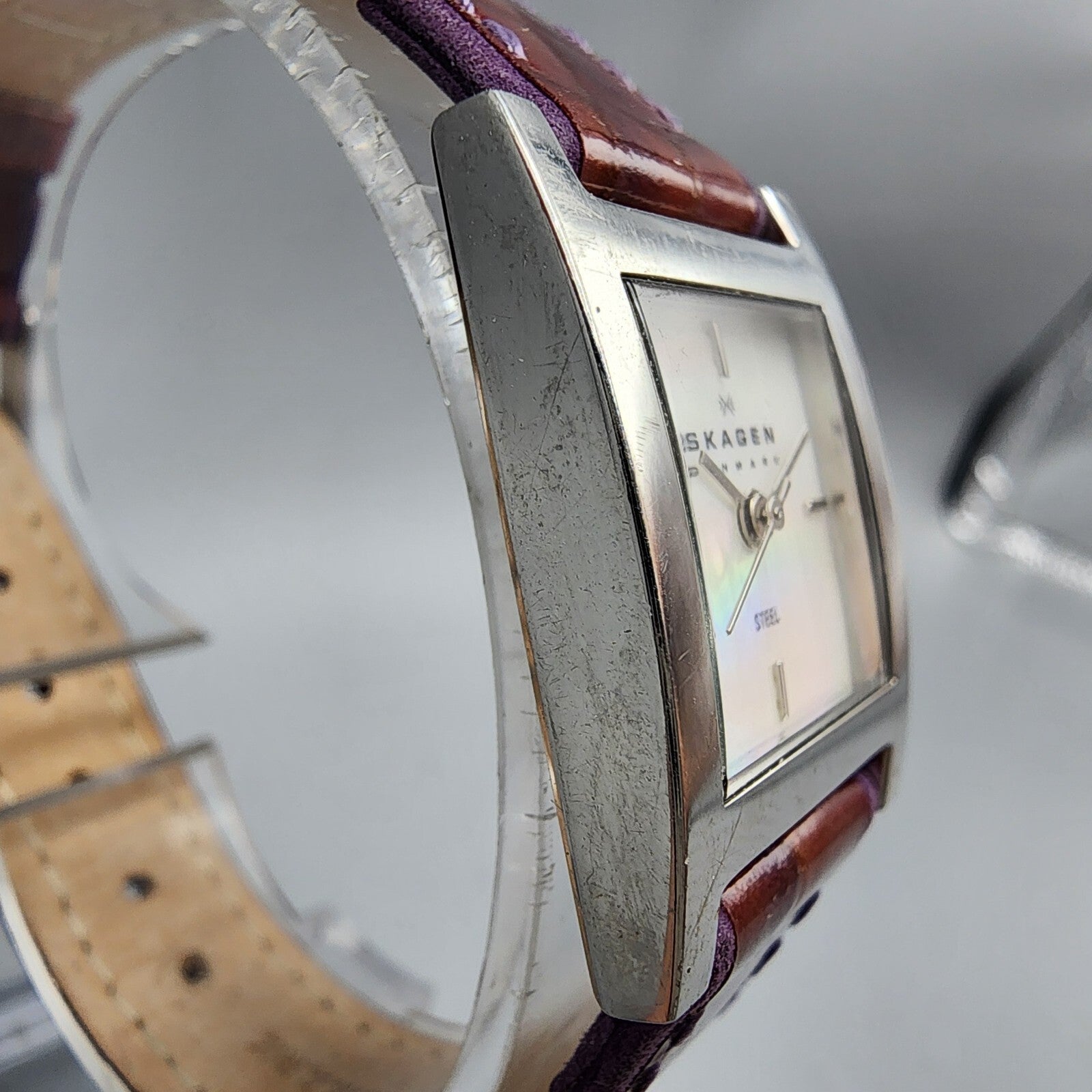 Skagen Steel Watch Women 21mm MOP Dial Silver Tone Rectangle 228SSlBMP New Batt