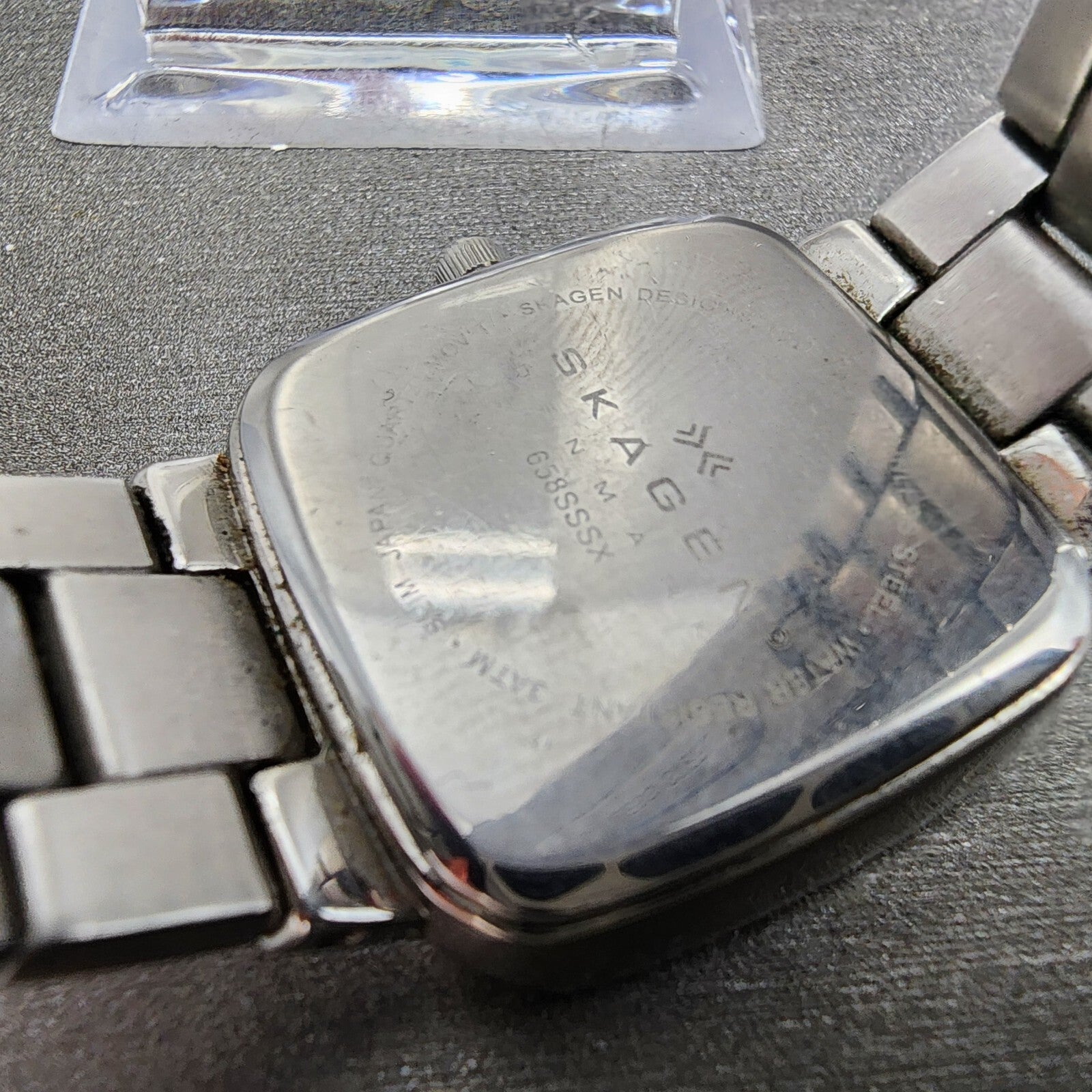 Skagen Steel Watch Women 26mm MOP Dial Silver Tone Rectangle 658SSSX New Batt