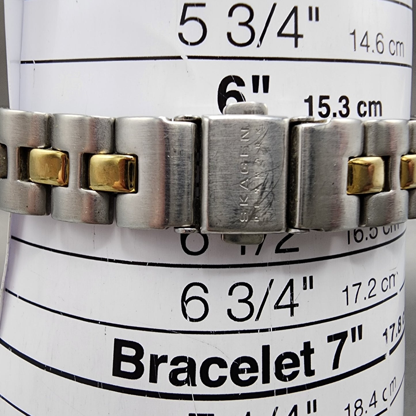 Skagen Watch Women 23mm Silver Dial Two Tone Date Round 236SGX New Battery