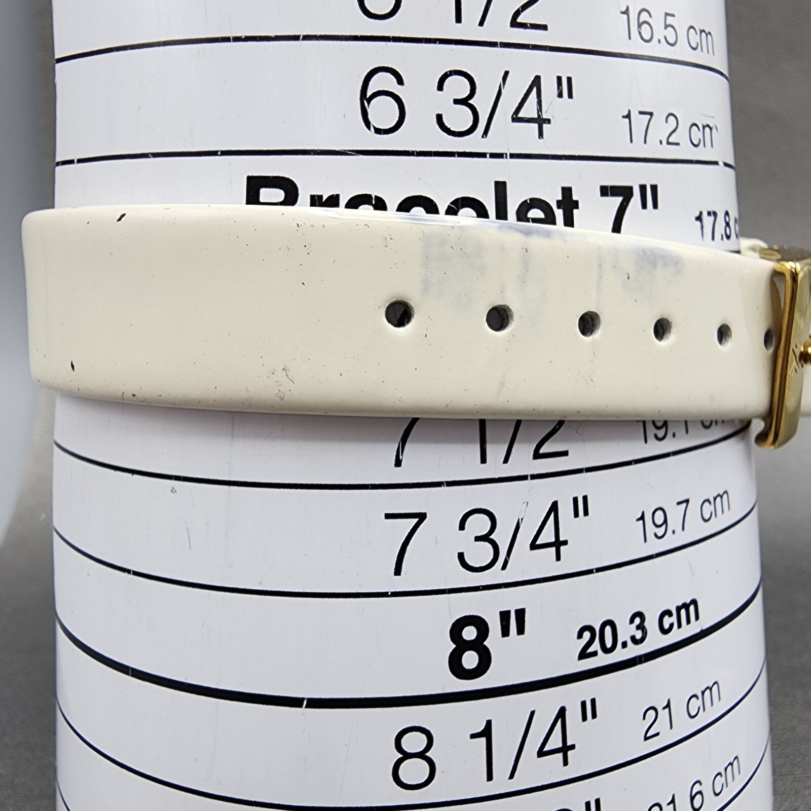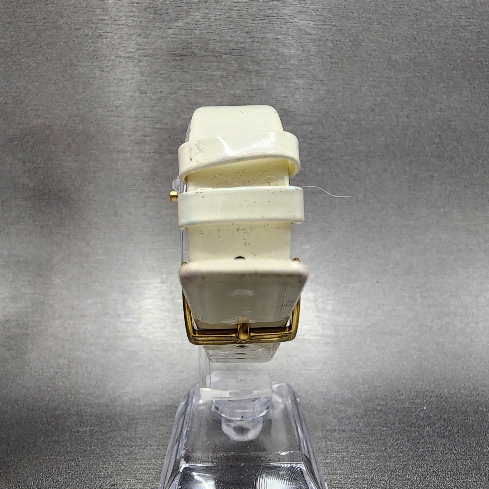 This watch has been used but is in good working condition. There is scratches on the watch. please refer to pictures. the band has some cracking on the inside.