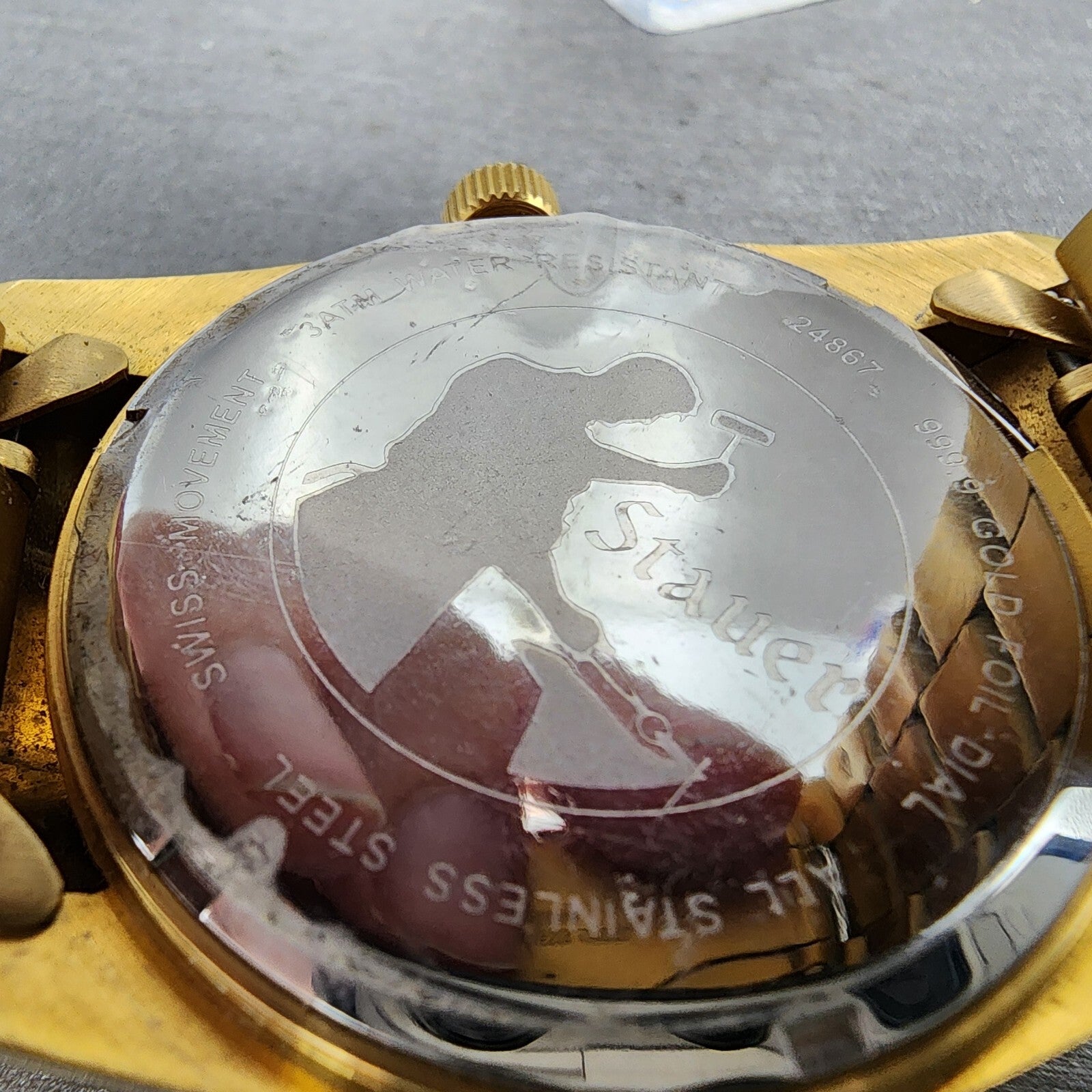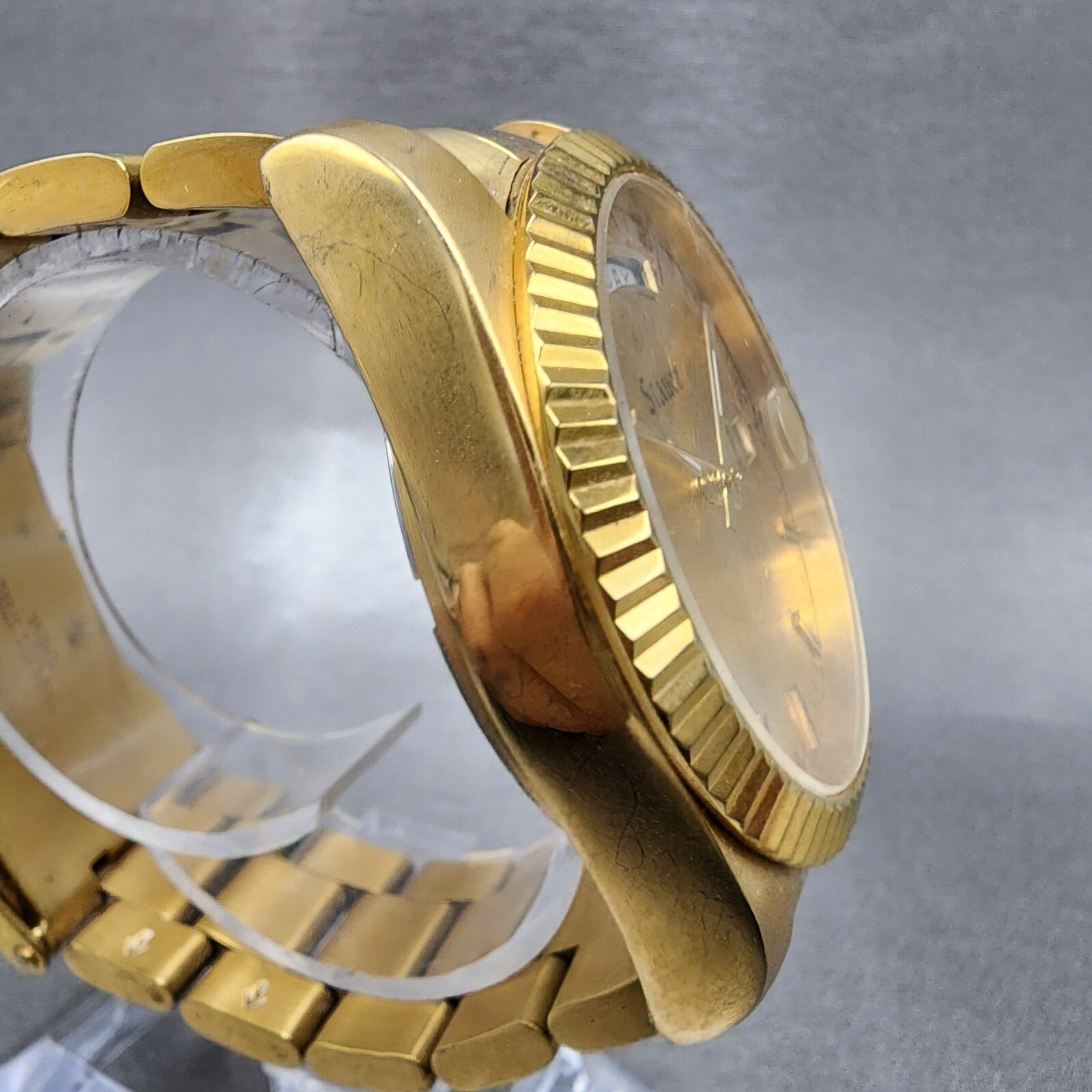Stauer Watch Men 40mm Gold Foil Dial Gold Tone Daydate 24867 New Battery