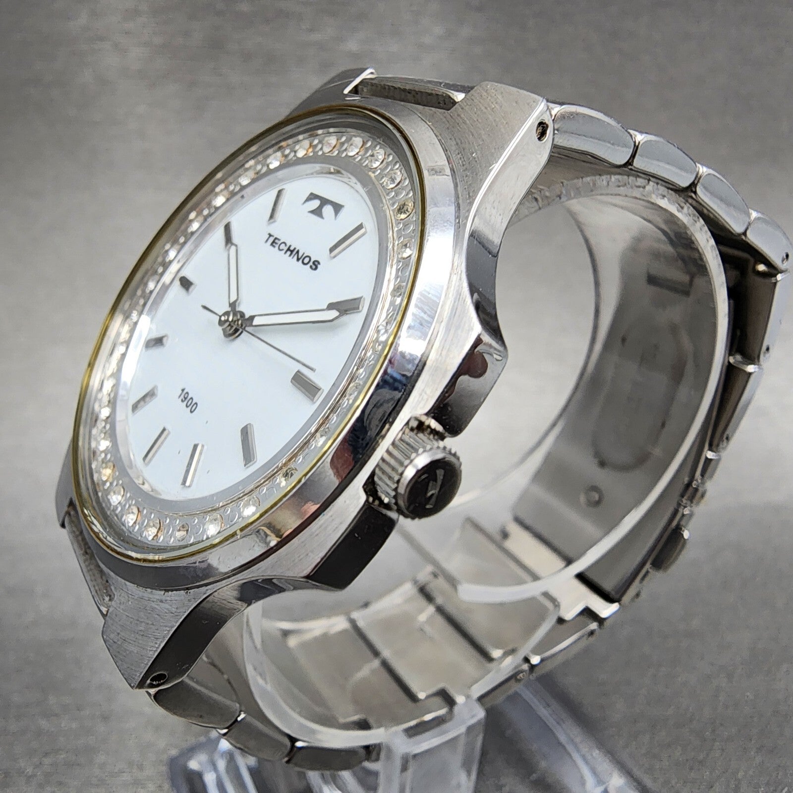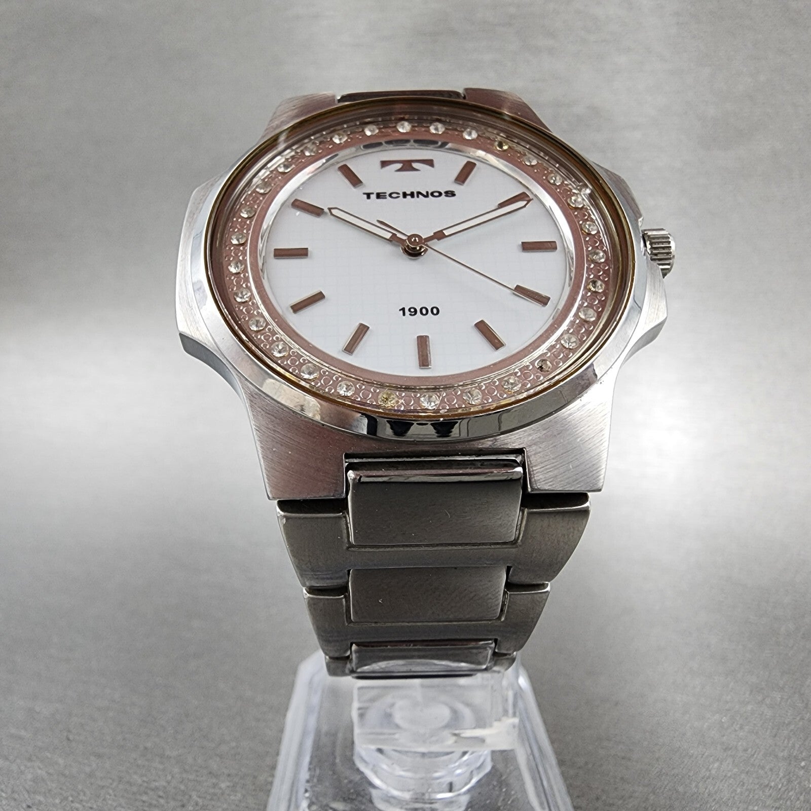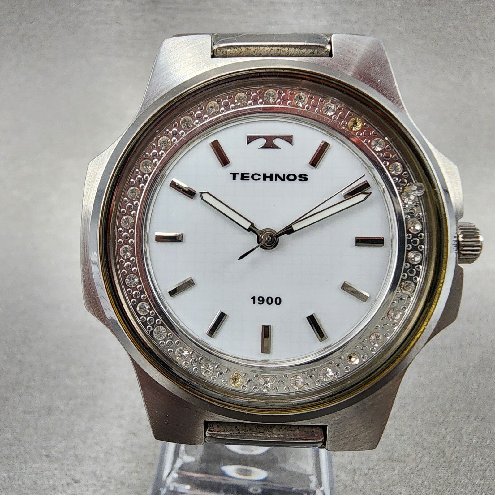 Technos 1900 Watch Men 41mm White Dial Steel Octagon T2591 New Battery