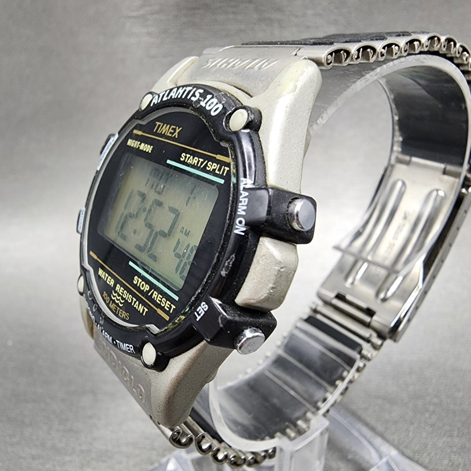 Timex Atlantis 100 Watch Men 40mm Digital Silver Black Tone Round New BatteryD67