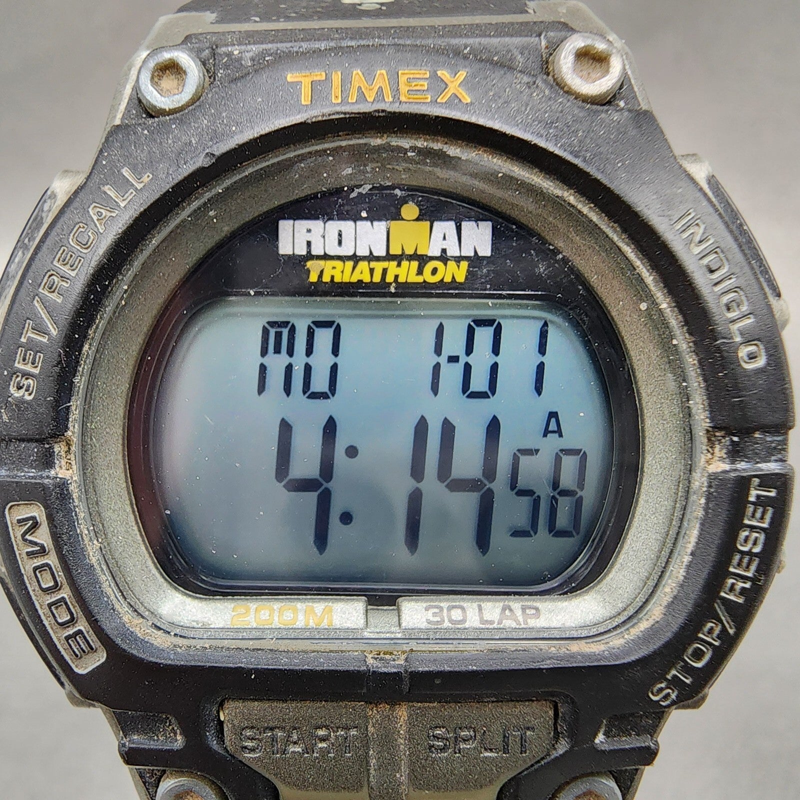 Timex Ironman Watch Men 42mm Digital Black Tone Alarm Chrono Round New Battery