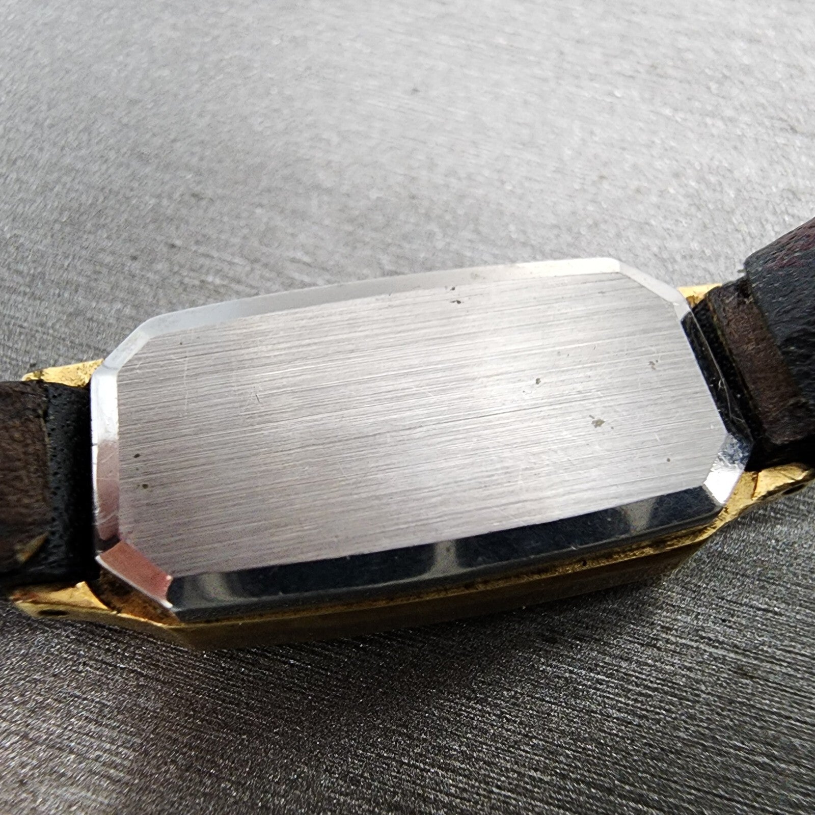 Tissot Tank Watch Women 14mm Brown Dial Gold Tone Octagon New Battery