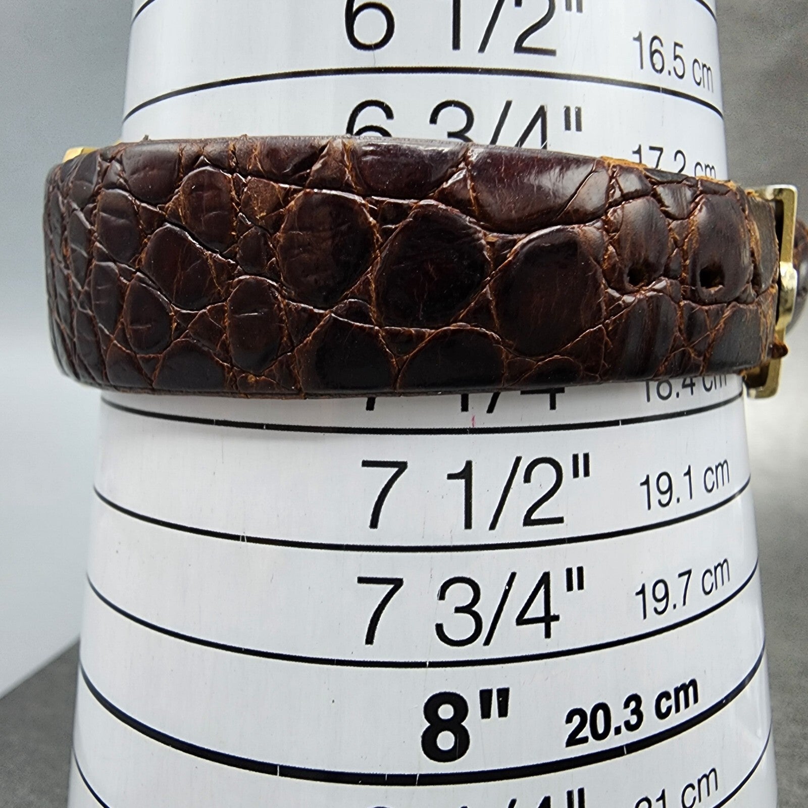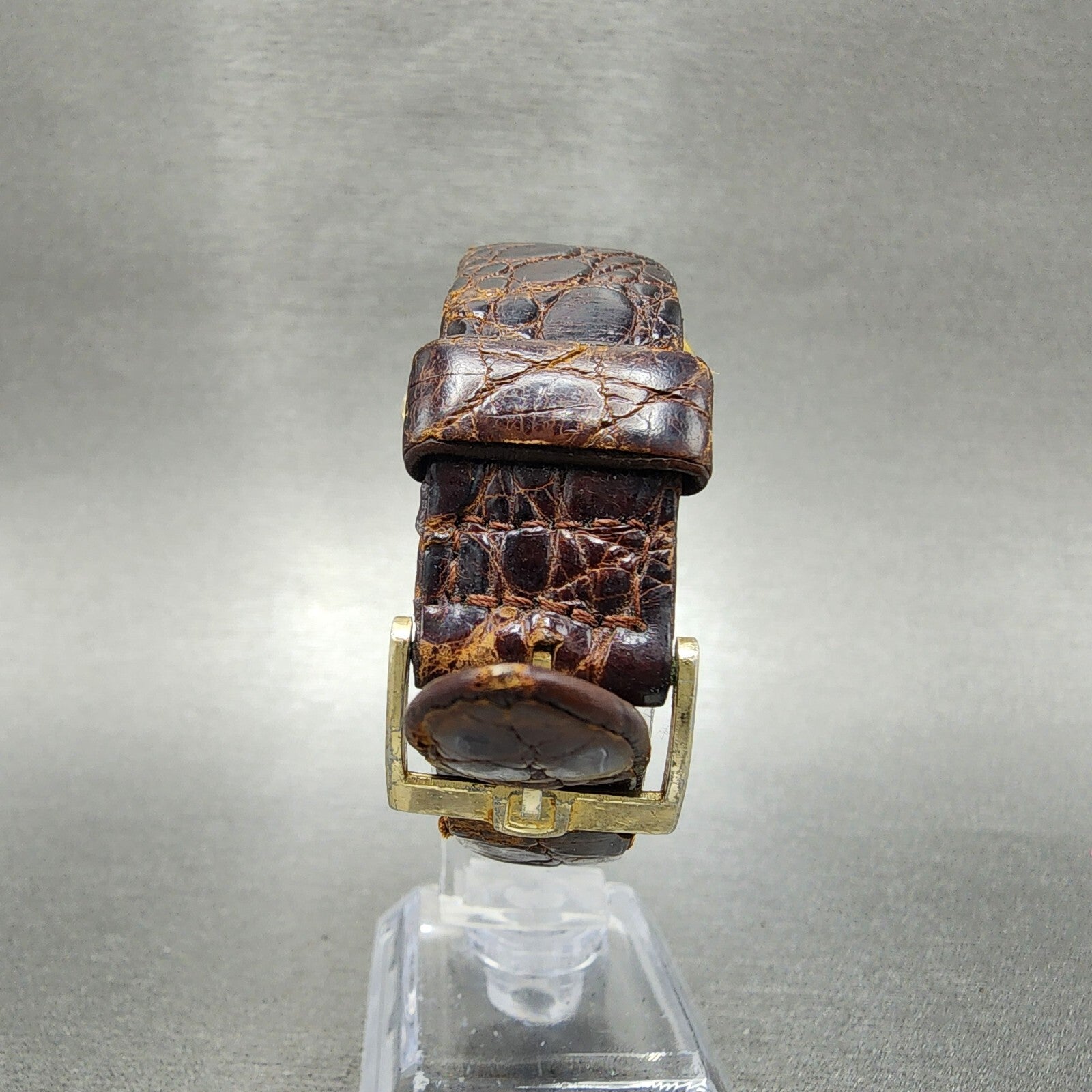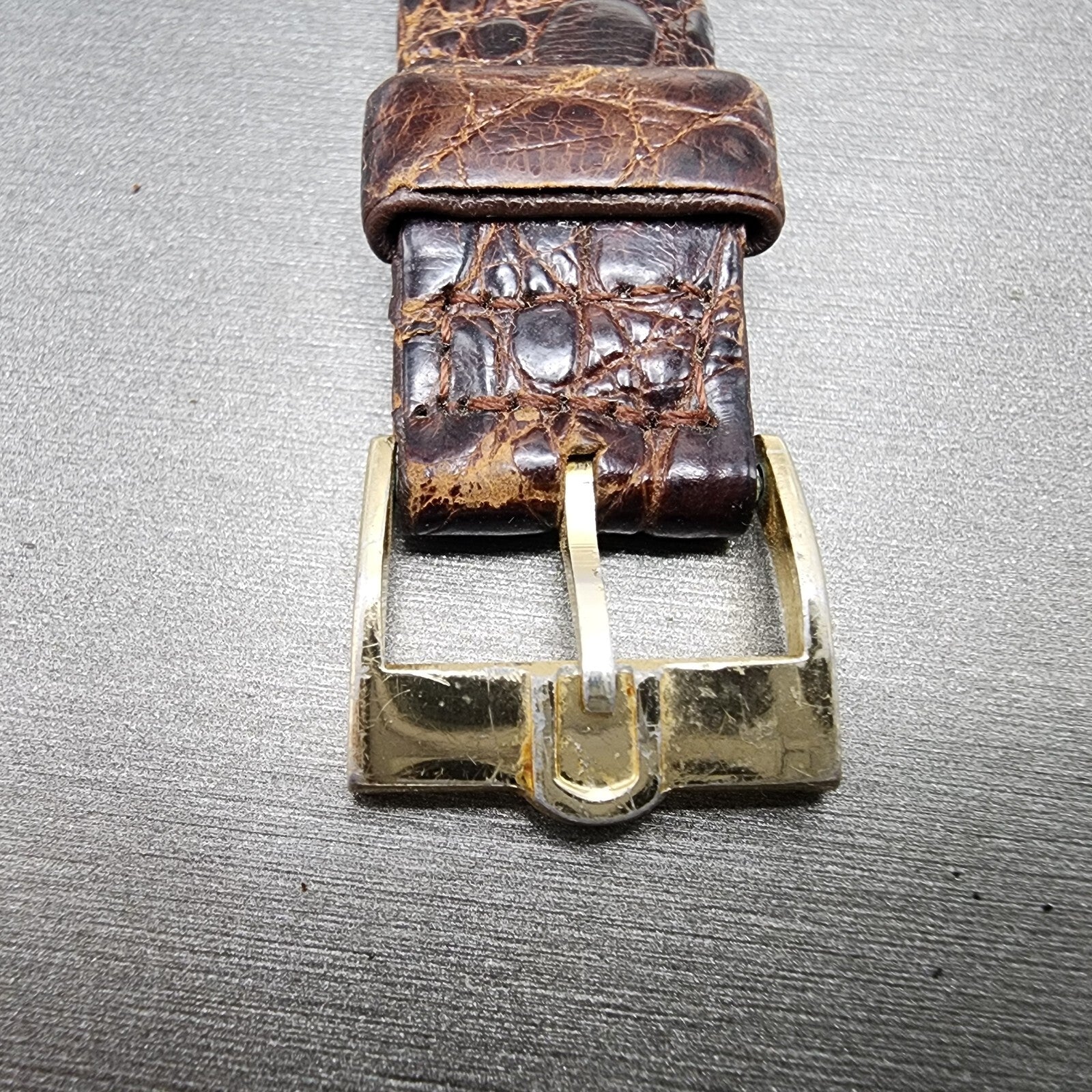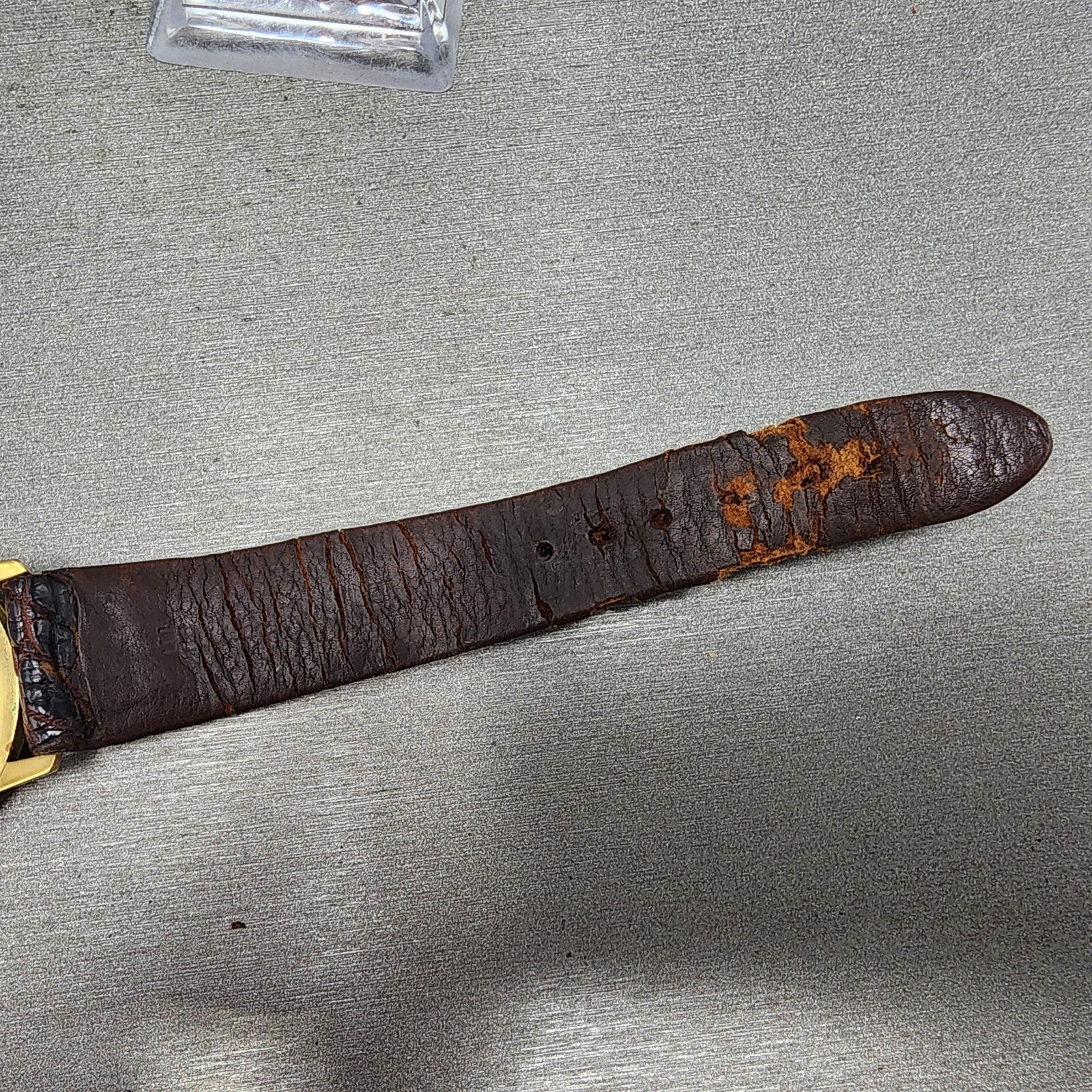 THE BAND HAS CRACKGIN AND IS FLAKING A PART. This watch has been used but is in good working condition. There is scratches on the watch. please refer to pictures.