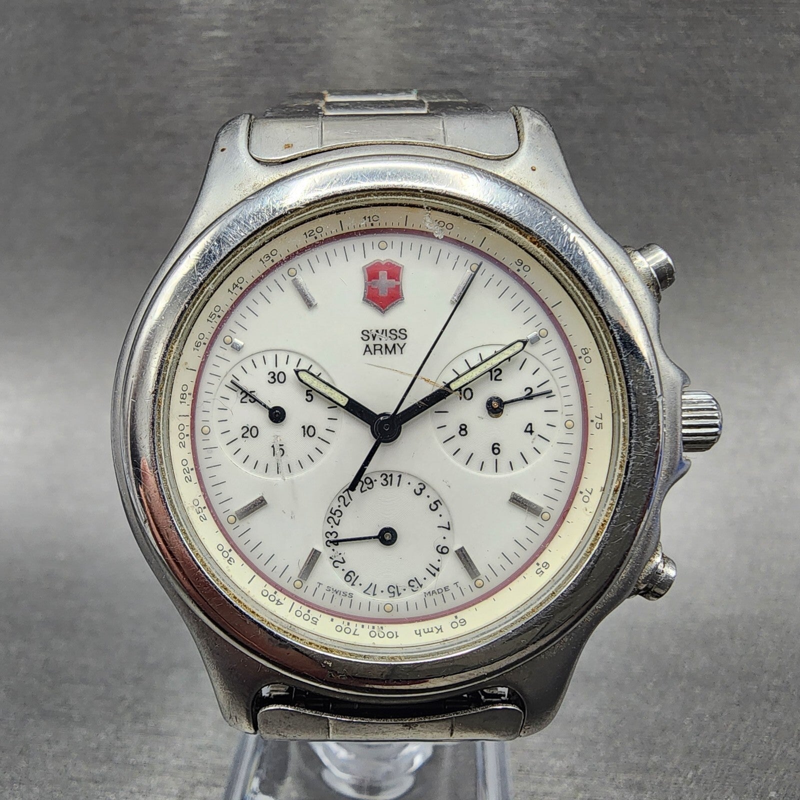 Victorinox Swiss Army Classic Chronograph Watch Men 40mm White Dial Steel READ!!