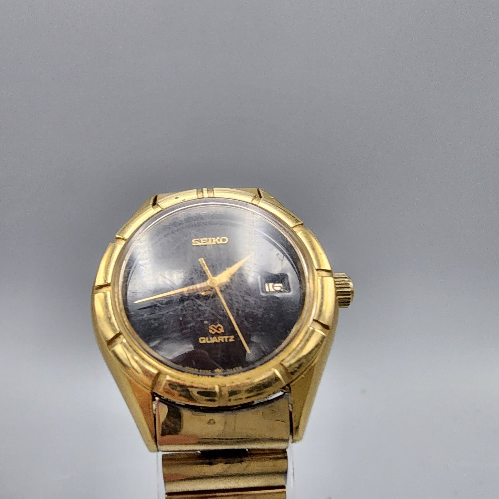 Vintage Seiko SQ Watch Women Gold Tone Black Dial Date 4302-0039 New Battery