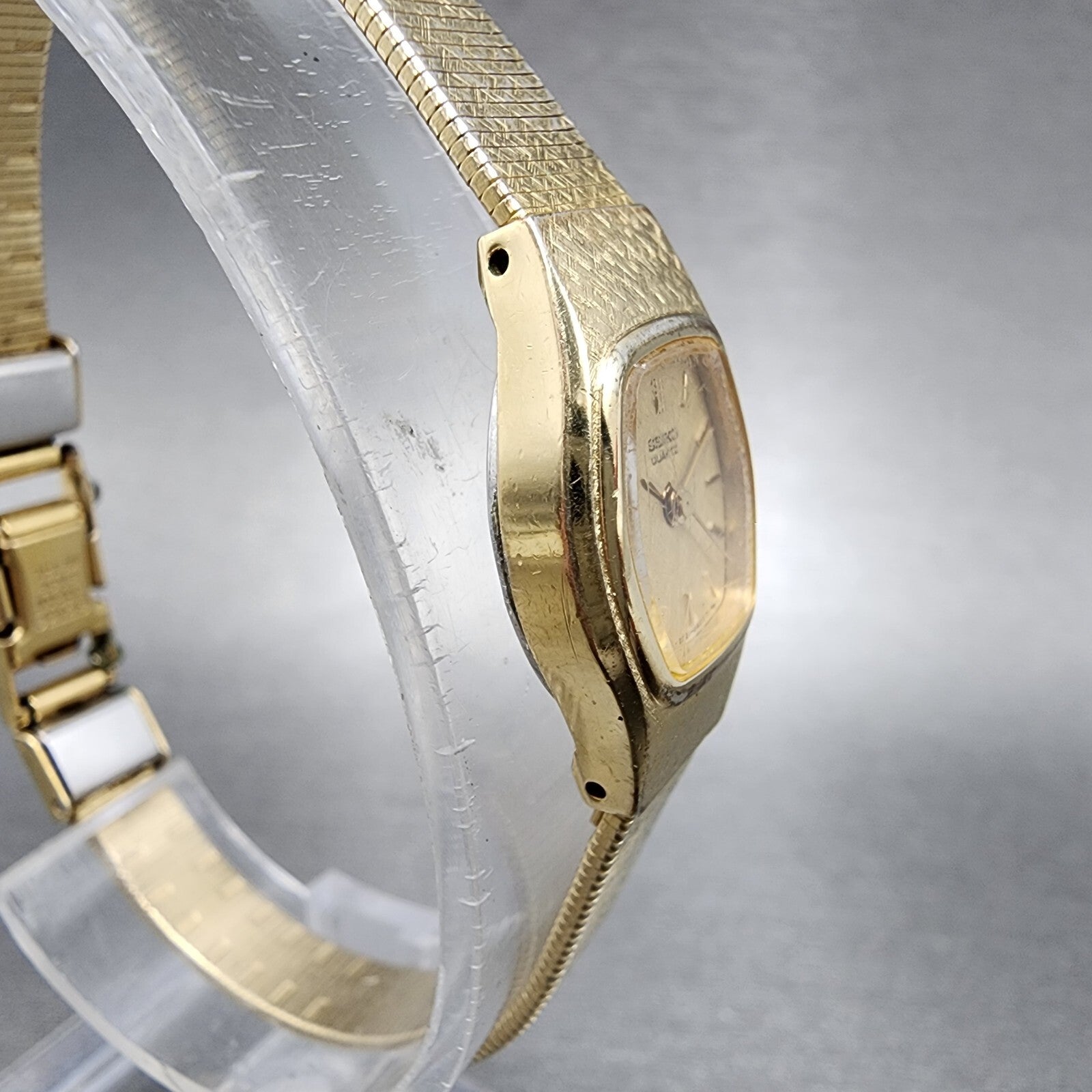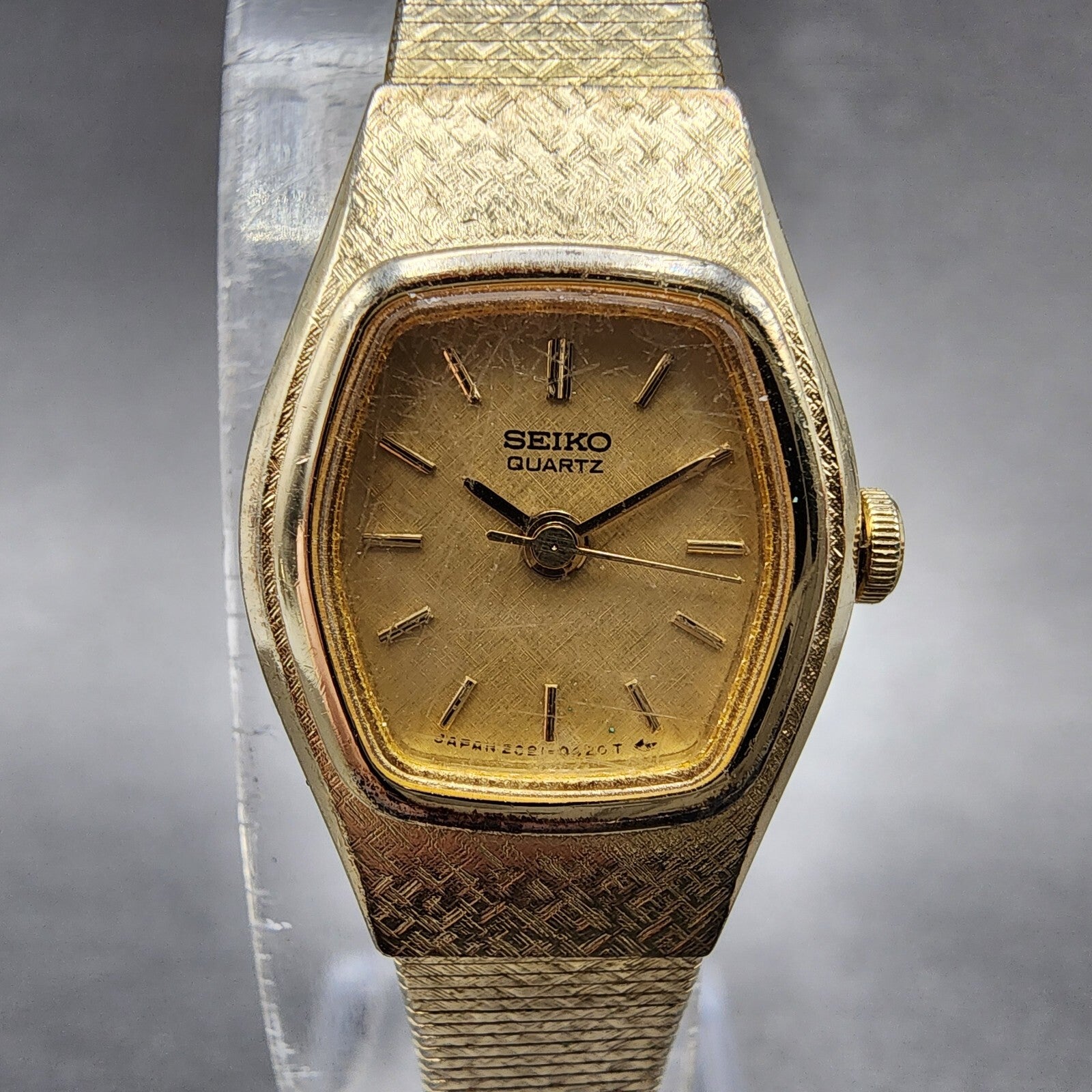 Vintage Seiko Watch Women 25mm Gold Dial Gold Tone Hexagon 2C21-5149 New Batt A1