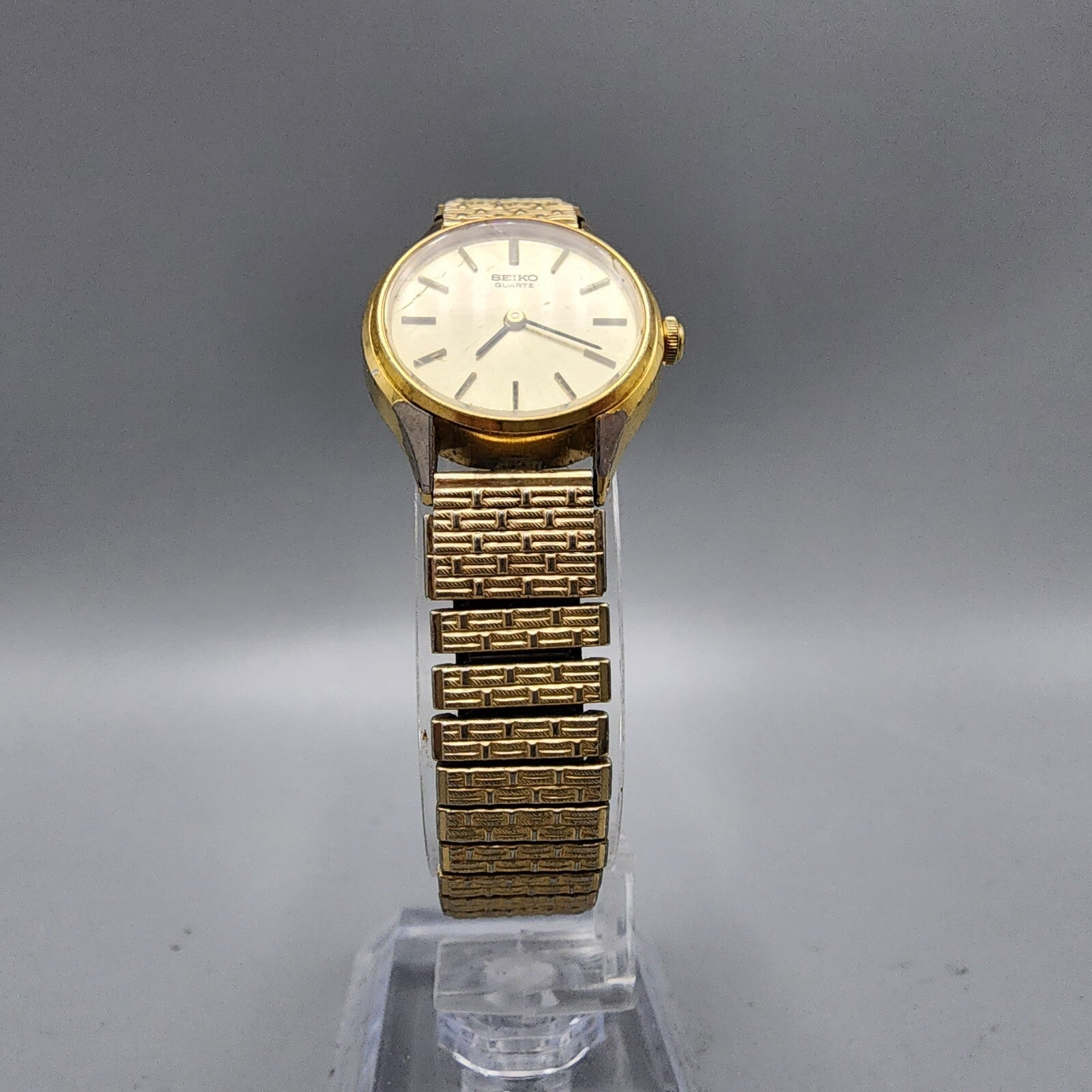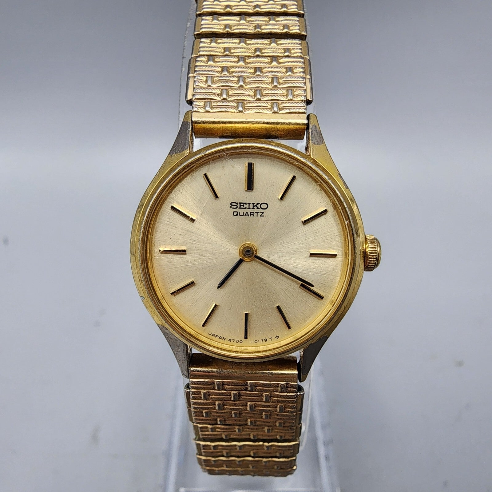 Vintage Seiko Watch Women Gold Tone Champange Dial 23mm Round 4700-0059 New Batt