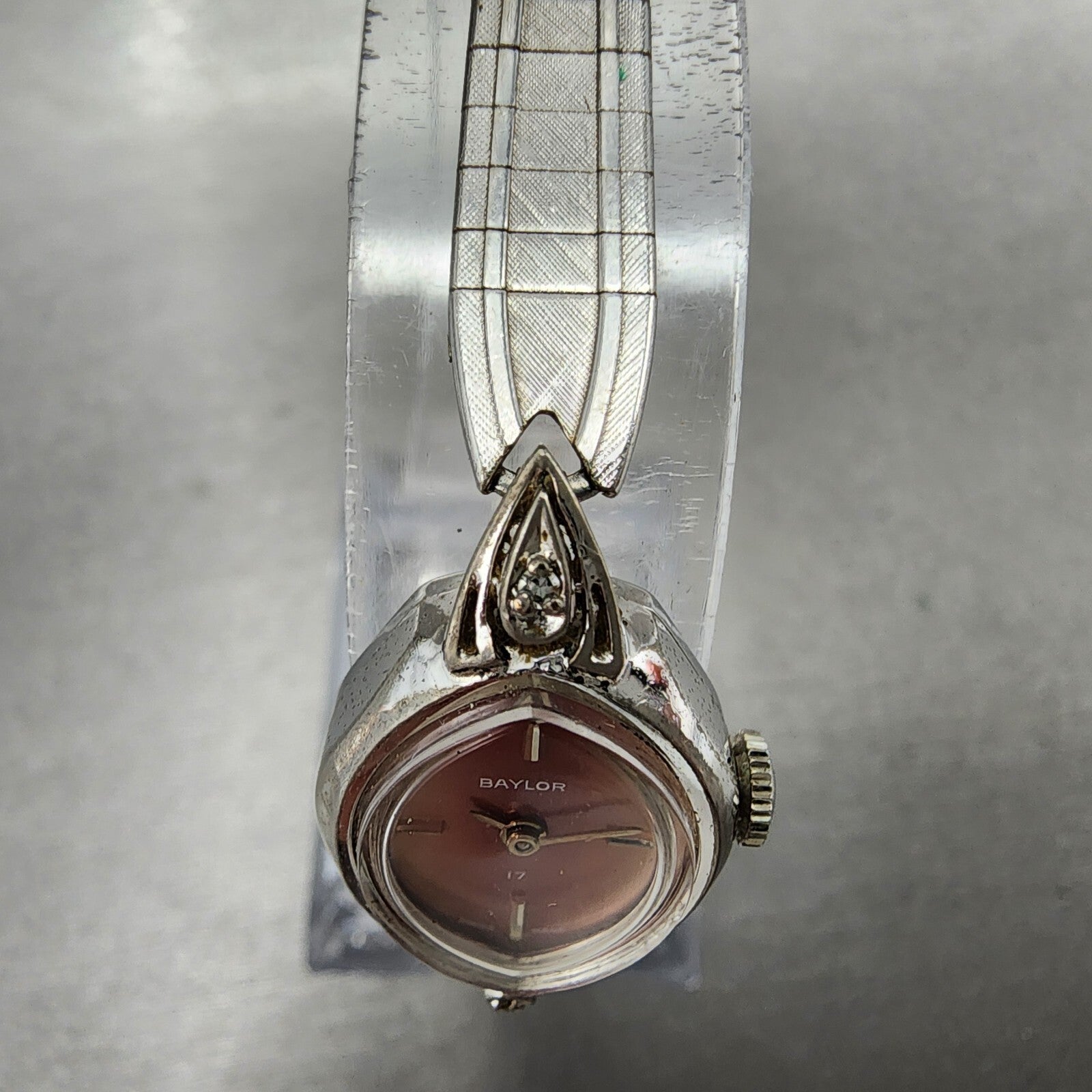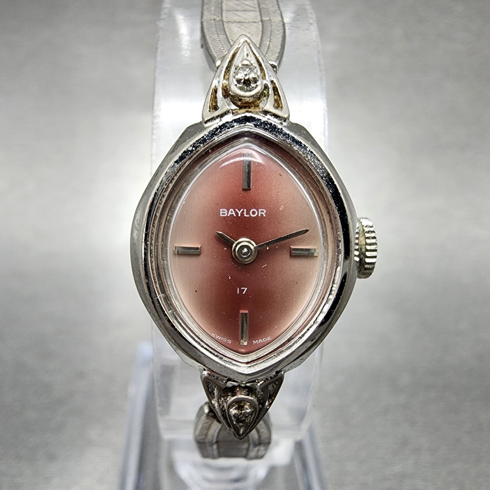 VTG Baylor Watch Women 17mm Pink Dial Silver Tone Oval Manual Wind Runs
