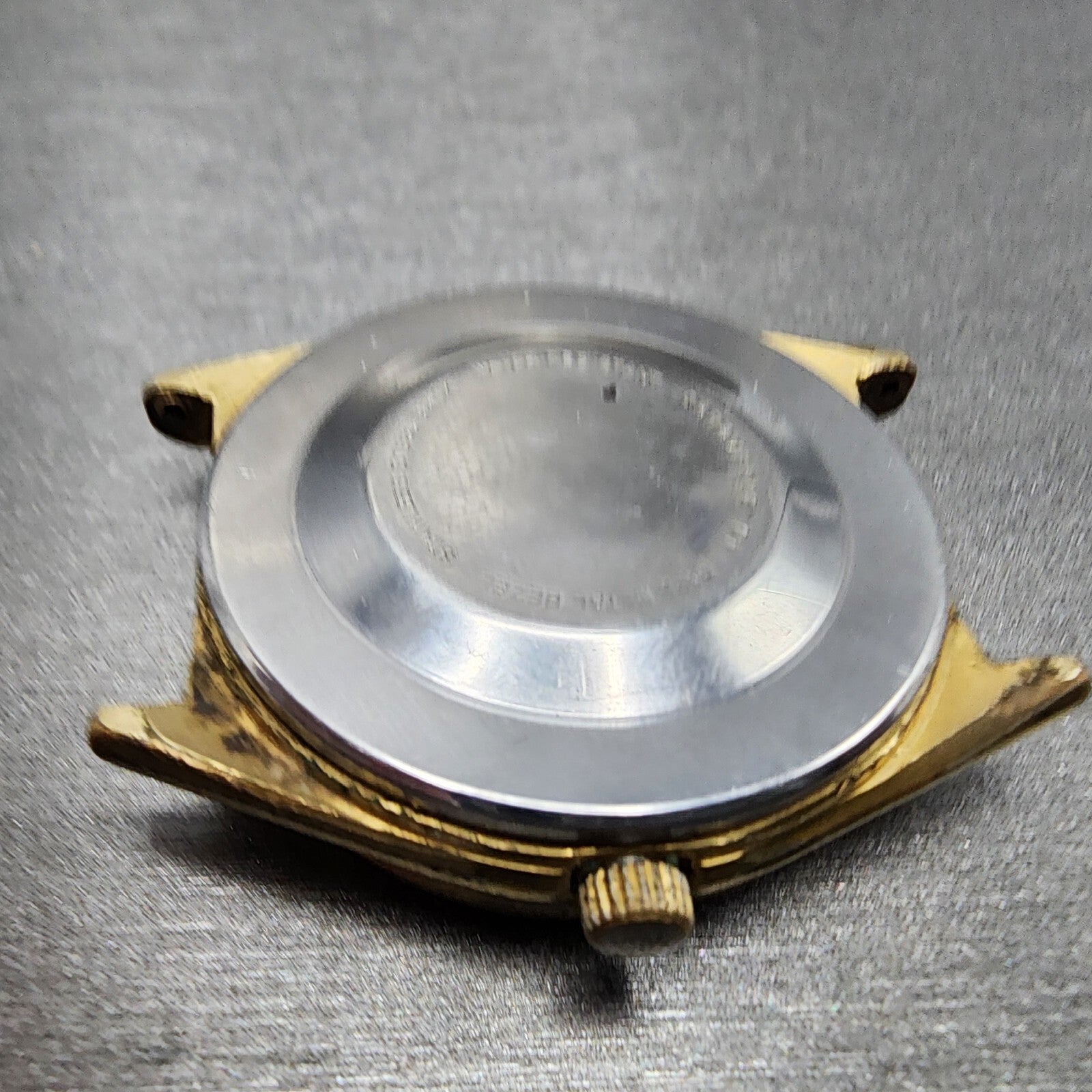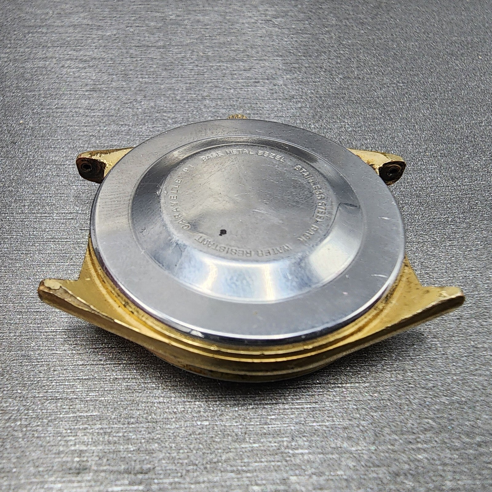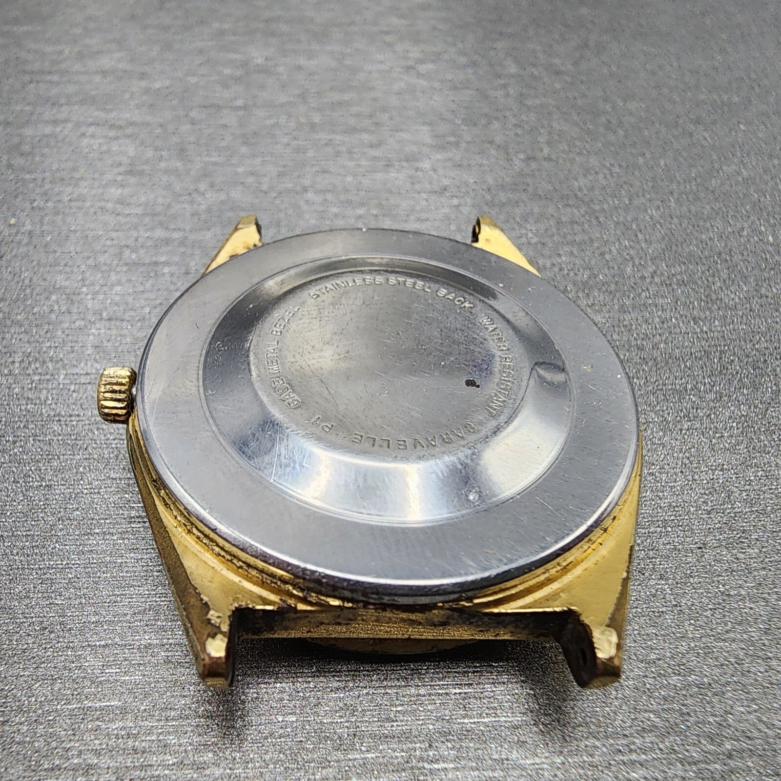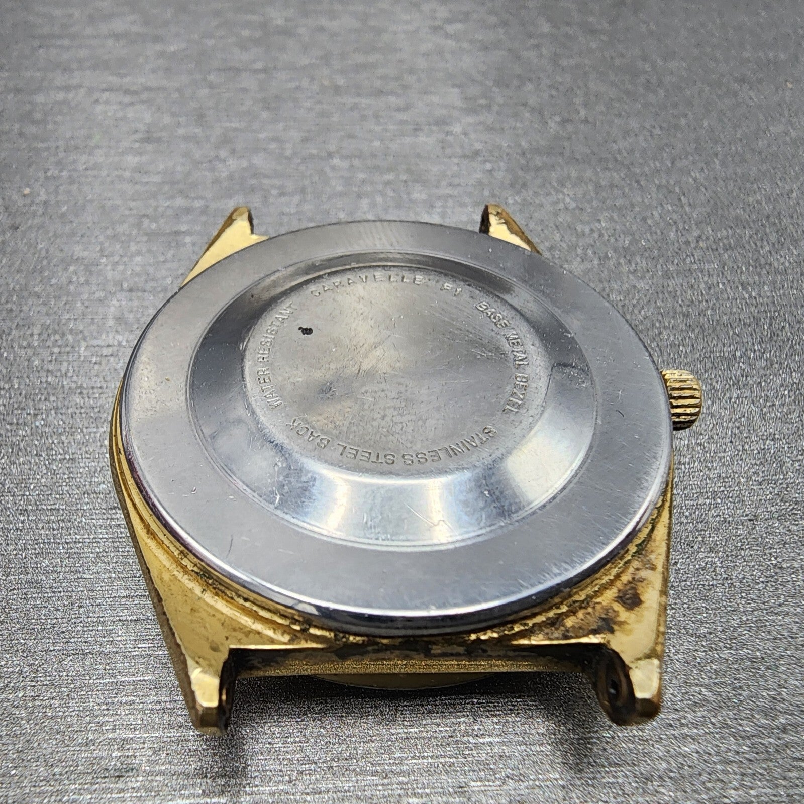 VTG Caravelle Watch Men 35mm White Dial Gold Tone Daydate Round PARTS