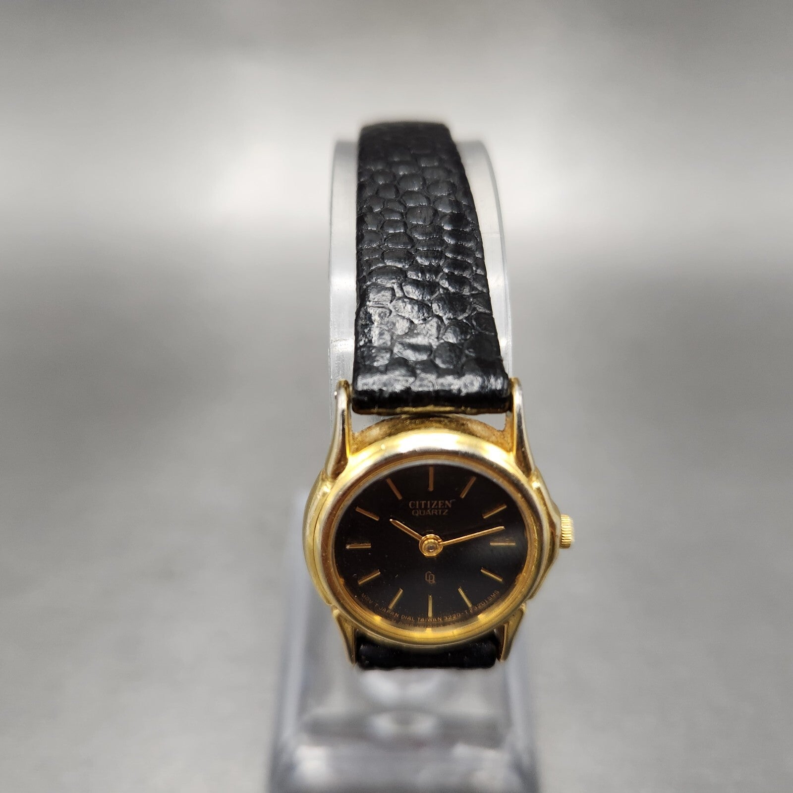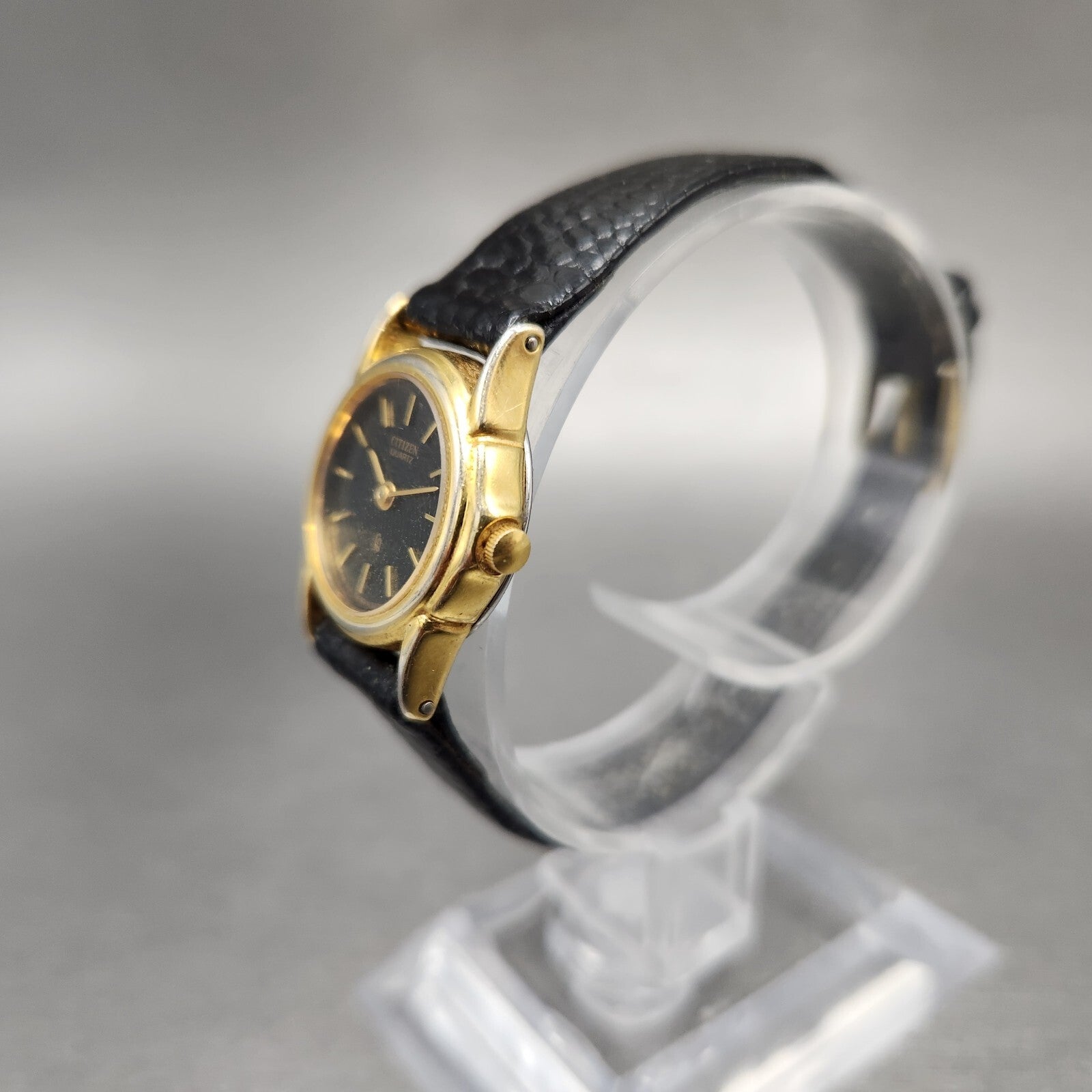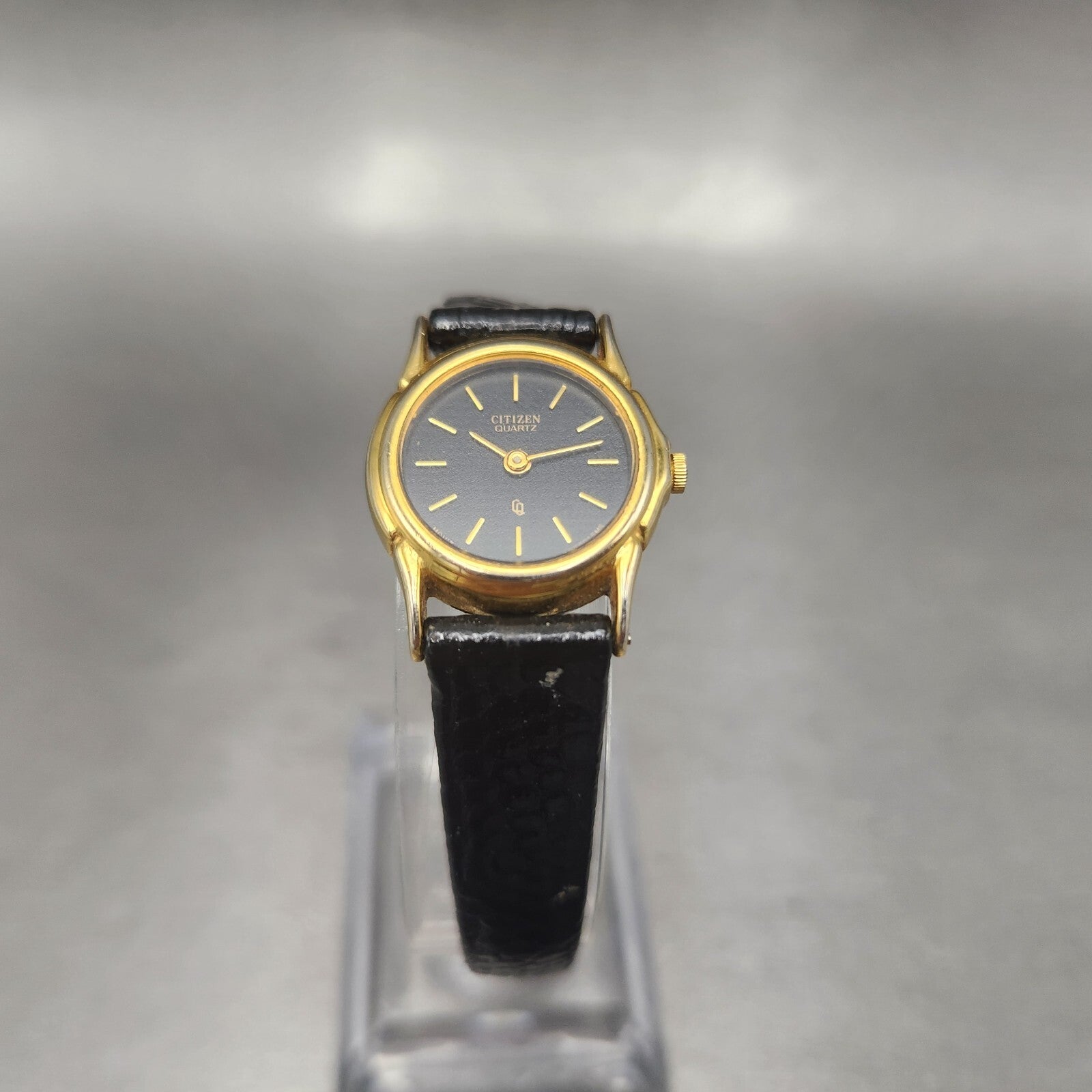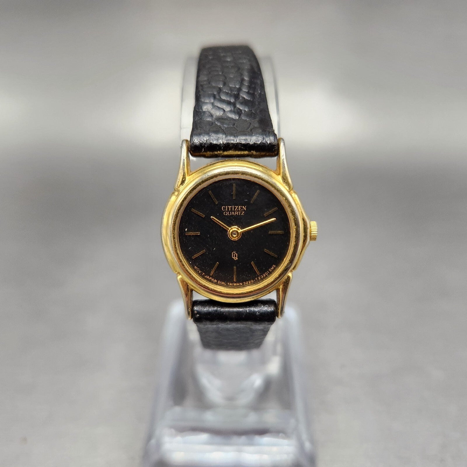 VTG Citizen CQ Watch Women 21mm Black Dial Gold Tone Round 3220-914864 New Batt