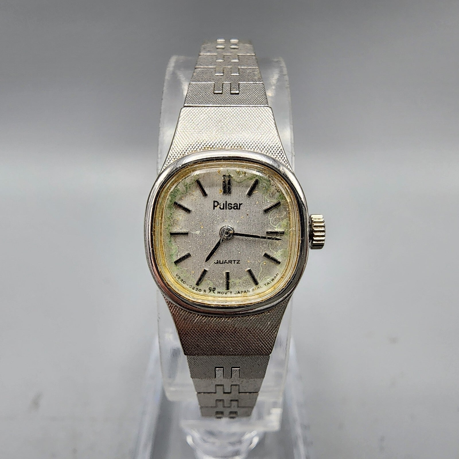 VTG Pulsar Watch Women Silver Tone Silver Dial 16mm Rectangle V230-5340 New Batt