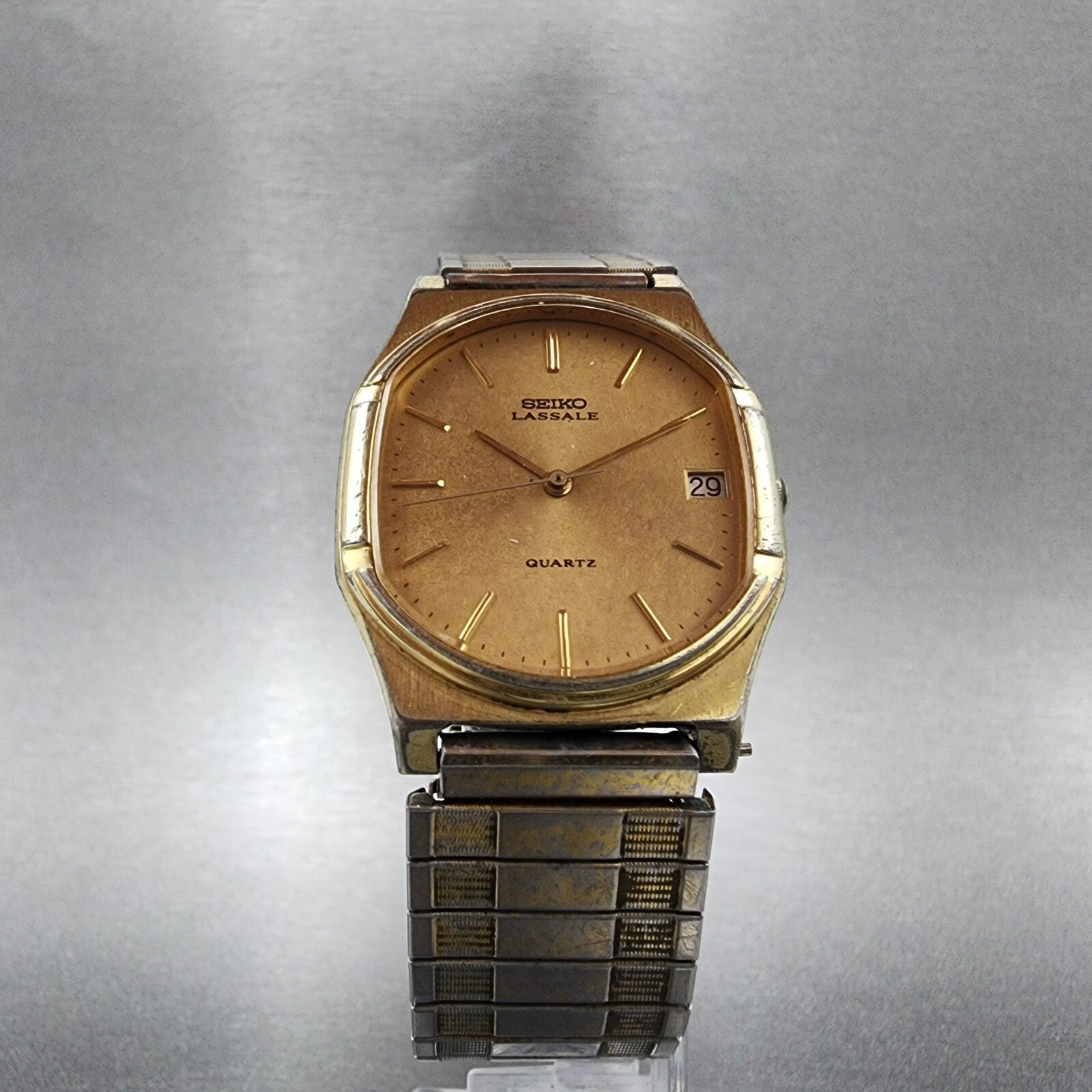 VTG Seiko Lassale Watch Men 30mm Gold Dial Gold Tone Date Oval 5932-5229 PARTS