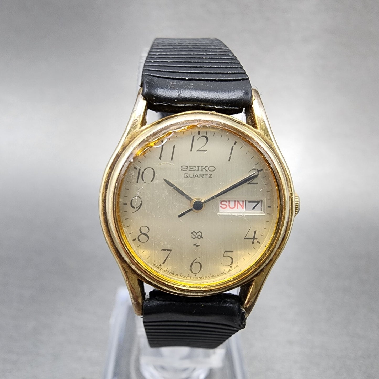 VTG Seiko SQ Watch Women 23mm Champagne Dial Gold Tone Daydate Round New Battery