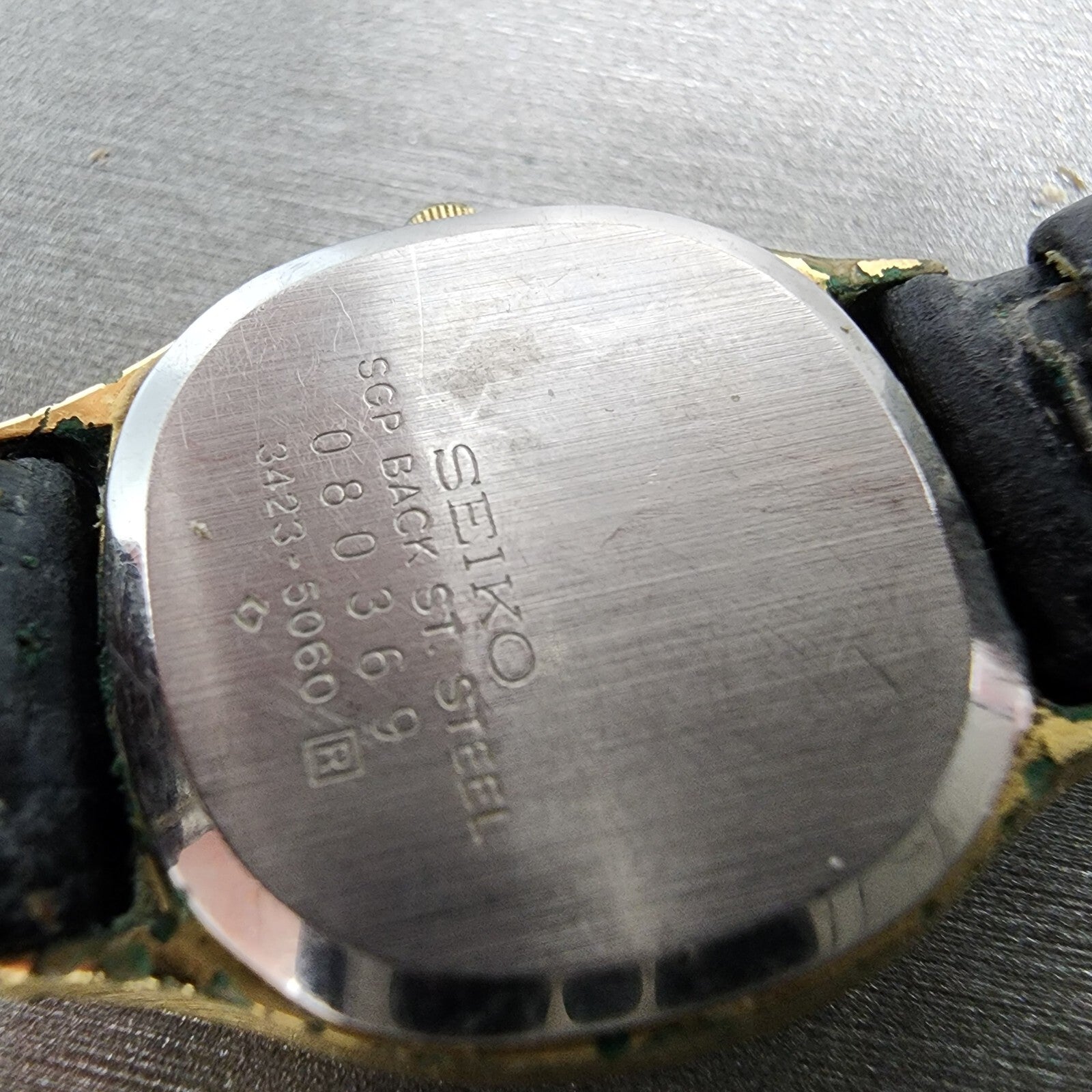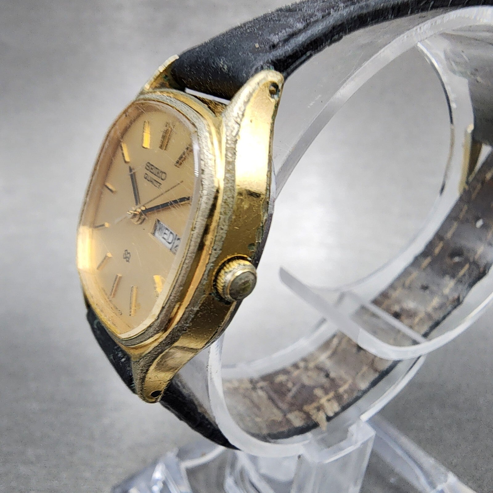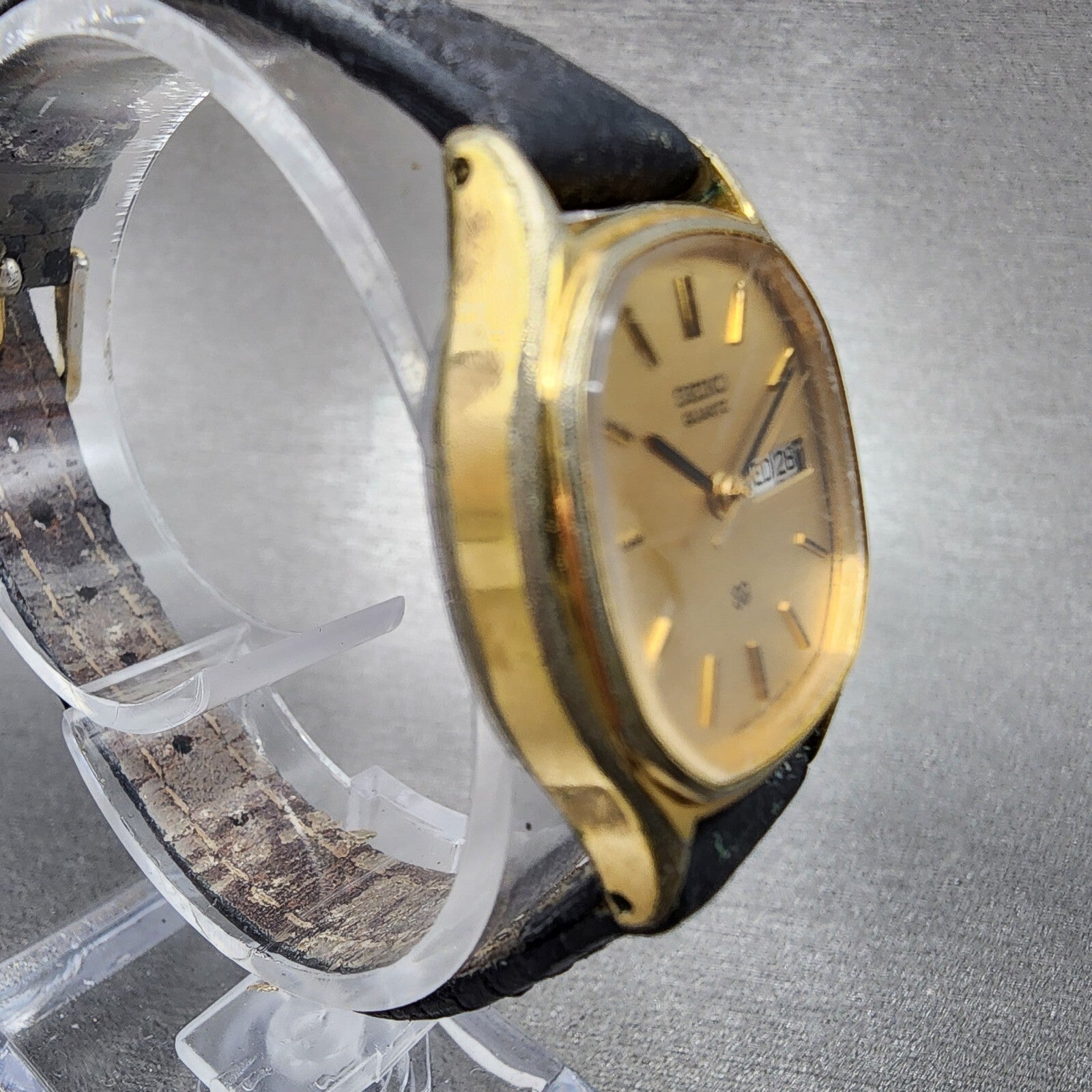 VTG Seiko SQ Watch Women 24mm Gold Dial Gold Tone Octagon 3423-5060 New Batt