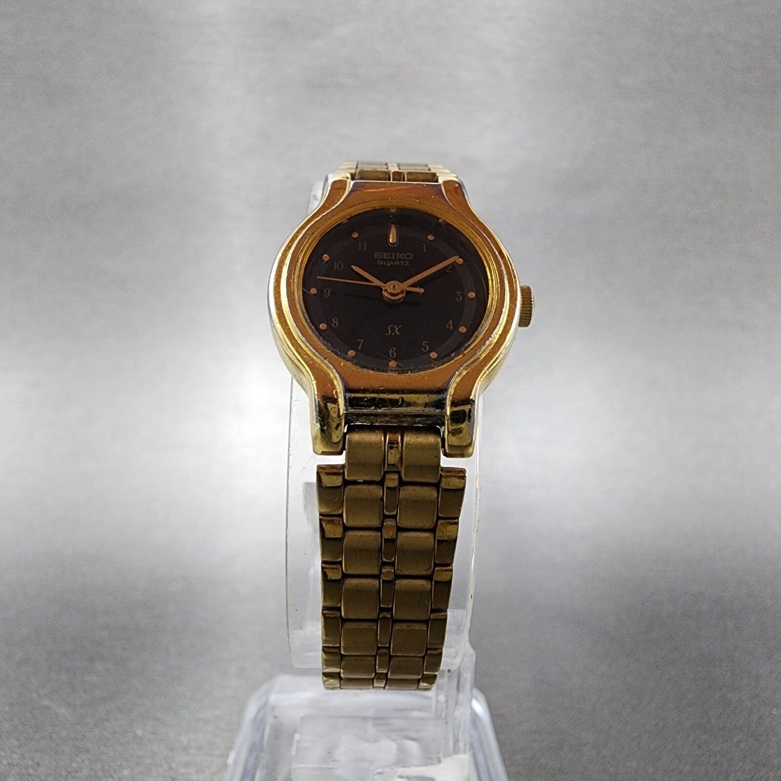 VTG Seiko SX Watch Women 19mm Black Dial Gold Tone Round V401-0281 New Battery