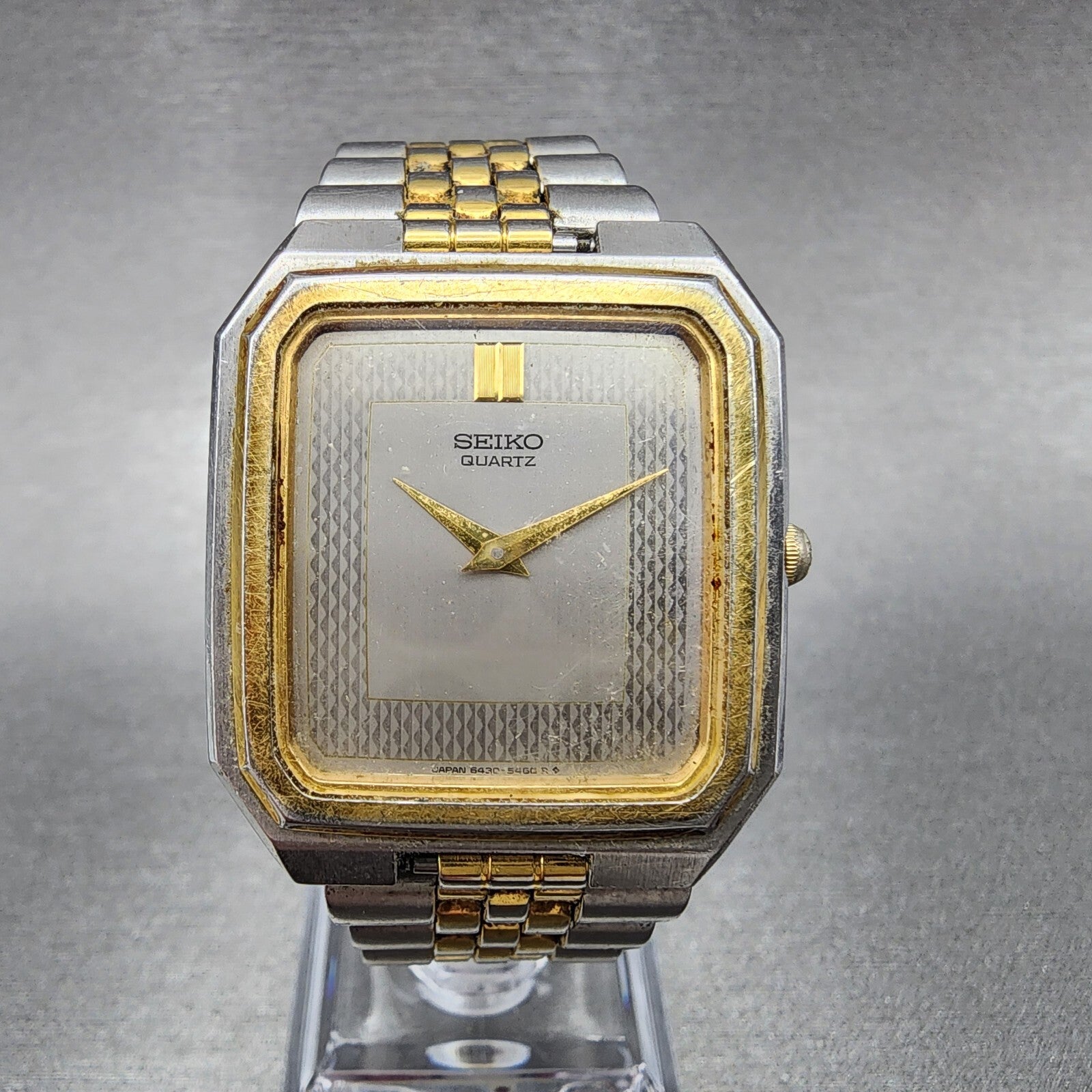 VTG Seiko Watch Men 30mm Silver Dial Two Tone Octagon 6430-5269 New Battery