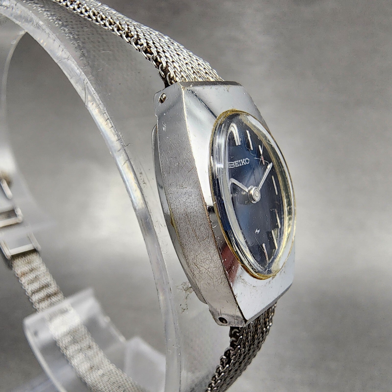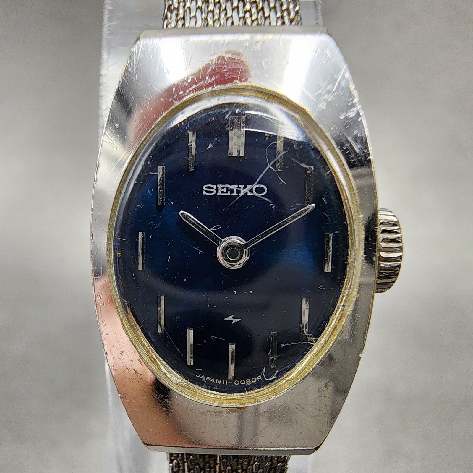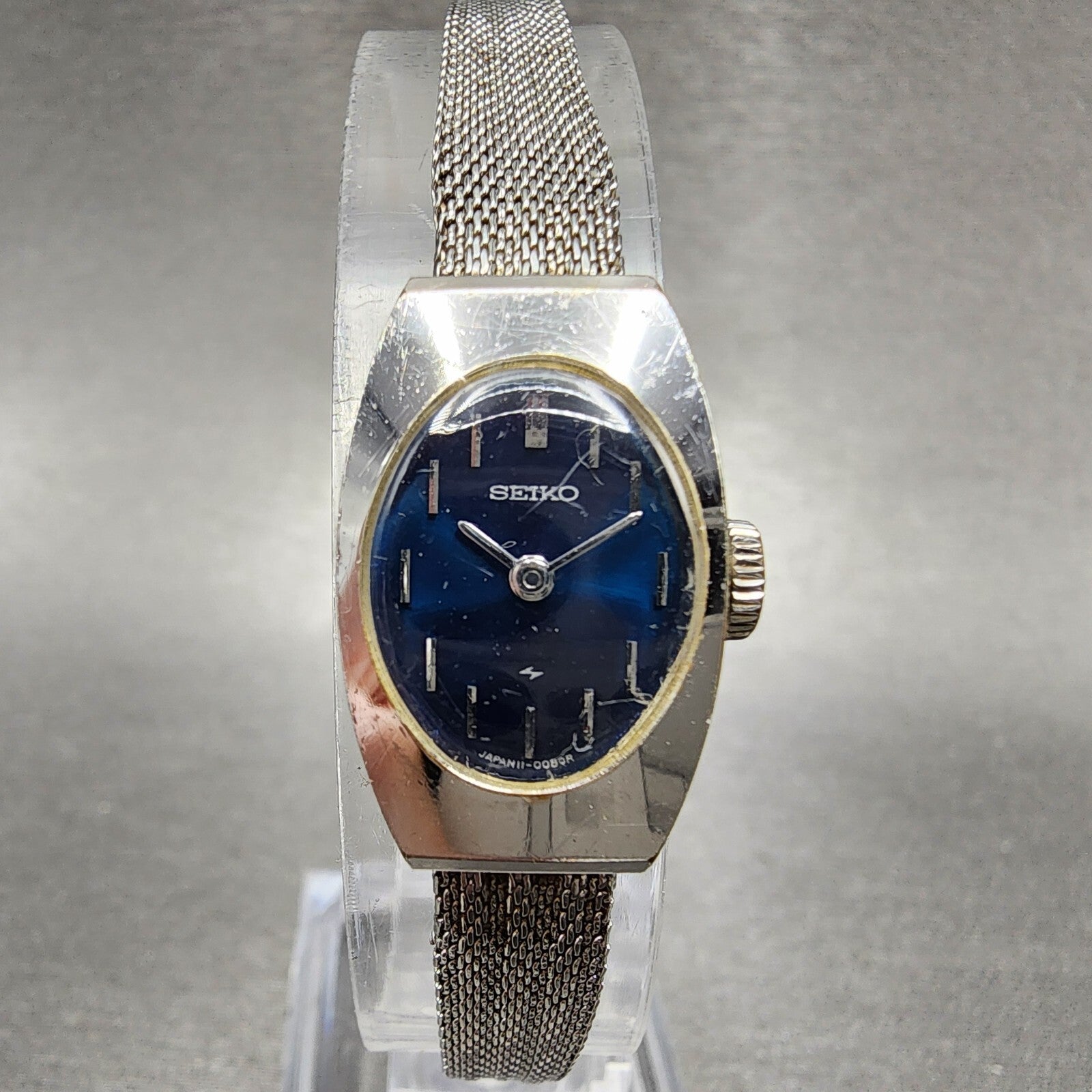 VTG Seiko Watch Women 15mm Blue Dial Silver Tone Manual Wind Rectangle 11 Runs