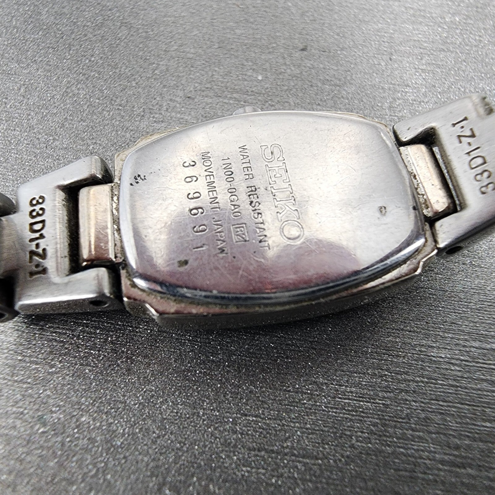 VTG Seiko Watch Women 16mm Blue Dial Silver Tone Rectangle 1N00-0GA0 New Battery