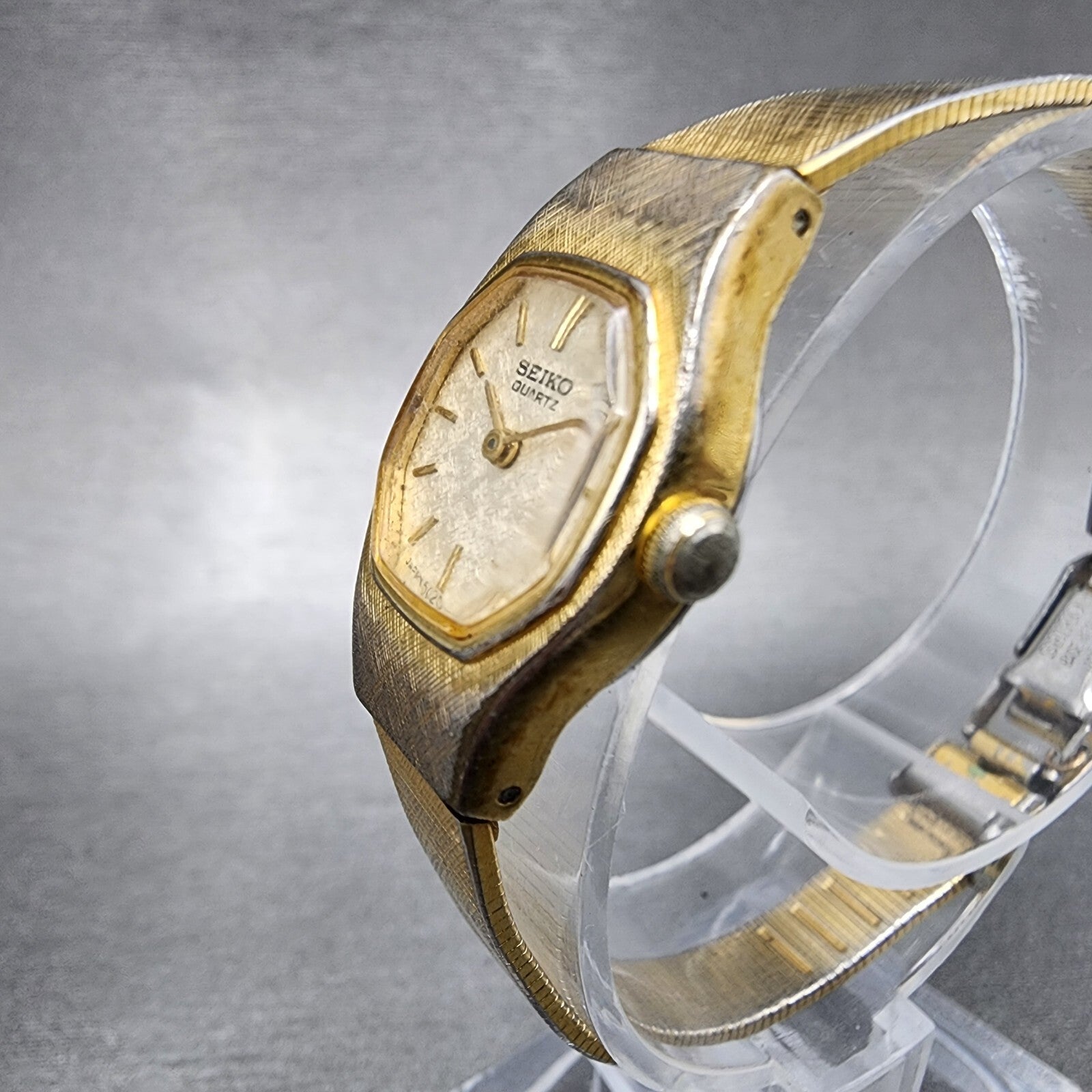 VTG Seiko Watch Women 16mm Champagne Dial Gold Tone Octagon 5420-5059 New Batt