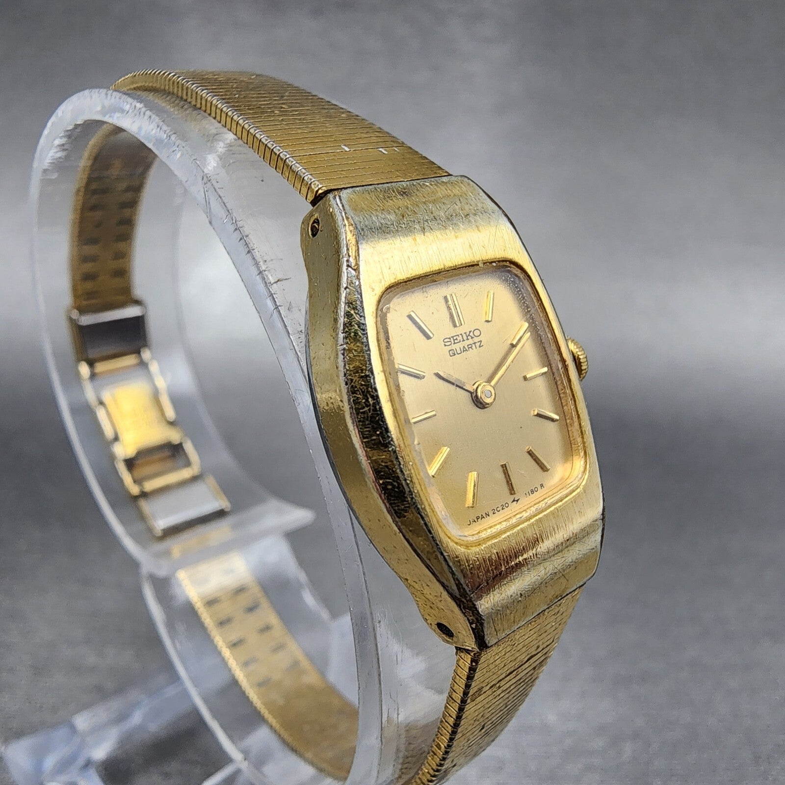 VTG Seiko Watch Women 16mm Gold Dial Gold Tone 2C20-5559 Tonneau New Battery