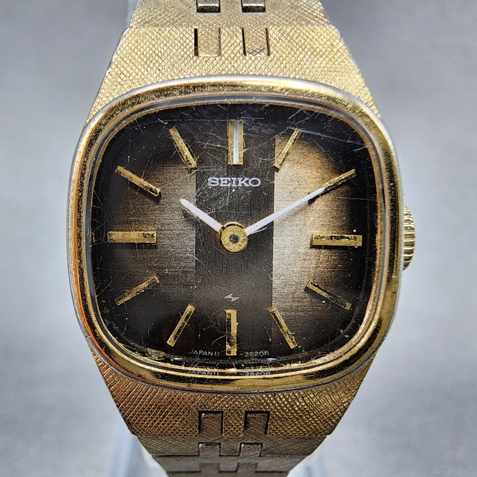 VTG Seiko Watch Women 19mm Brown Dial Gold Tone Rectangle Manual Wind Runs