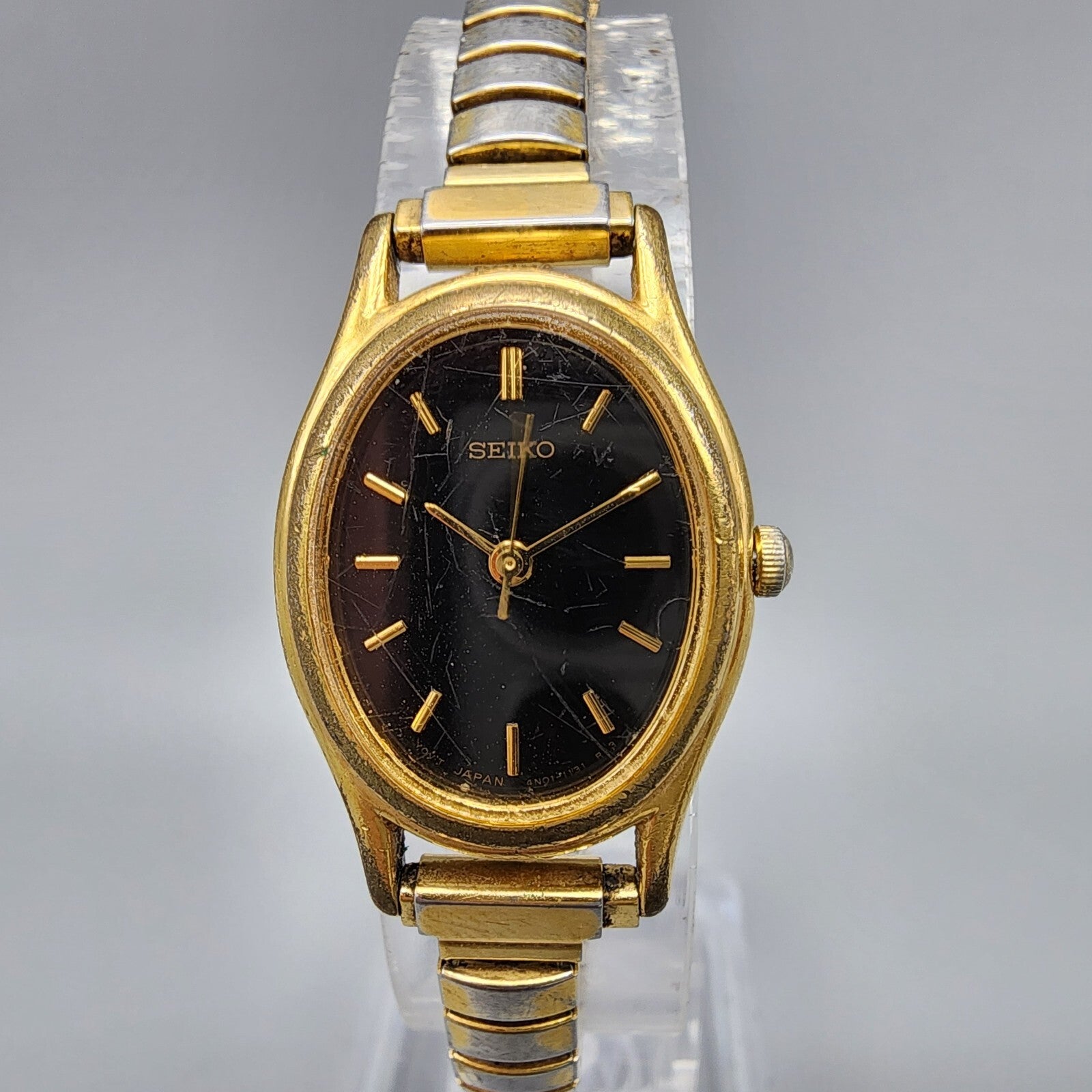 VTG Seiko Watch Women 20mm Black Dial Gold Tone Oval 4N01-5060 New Battery