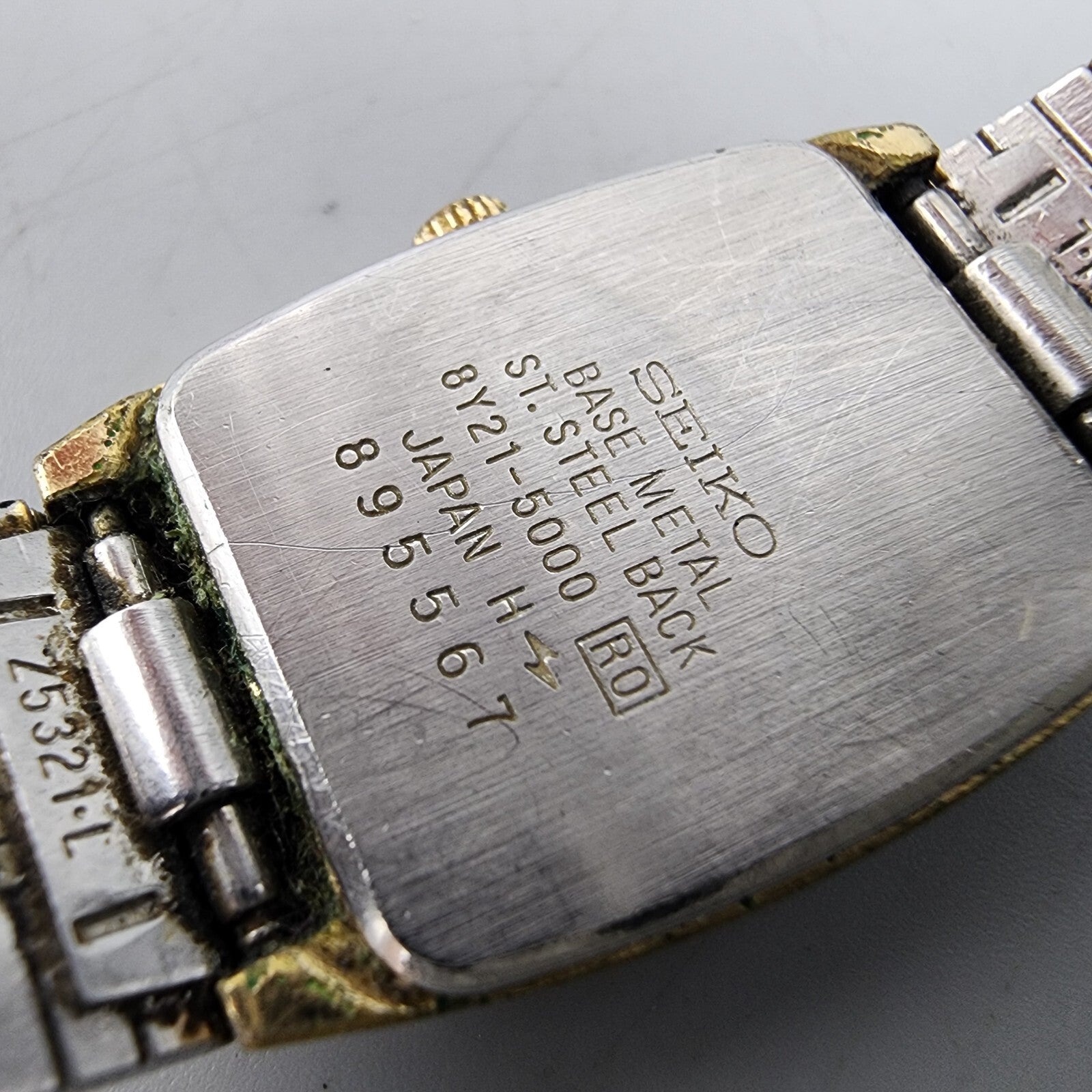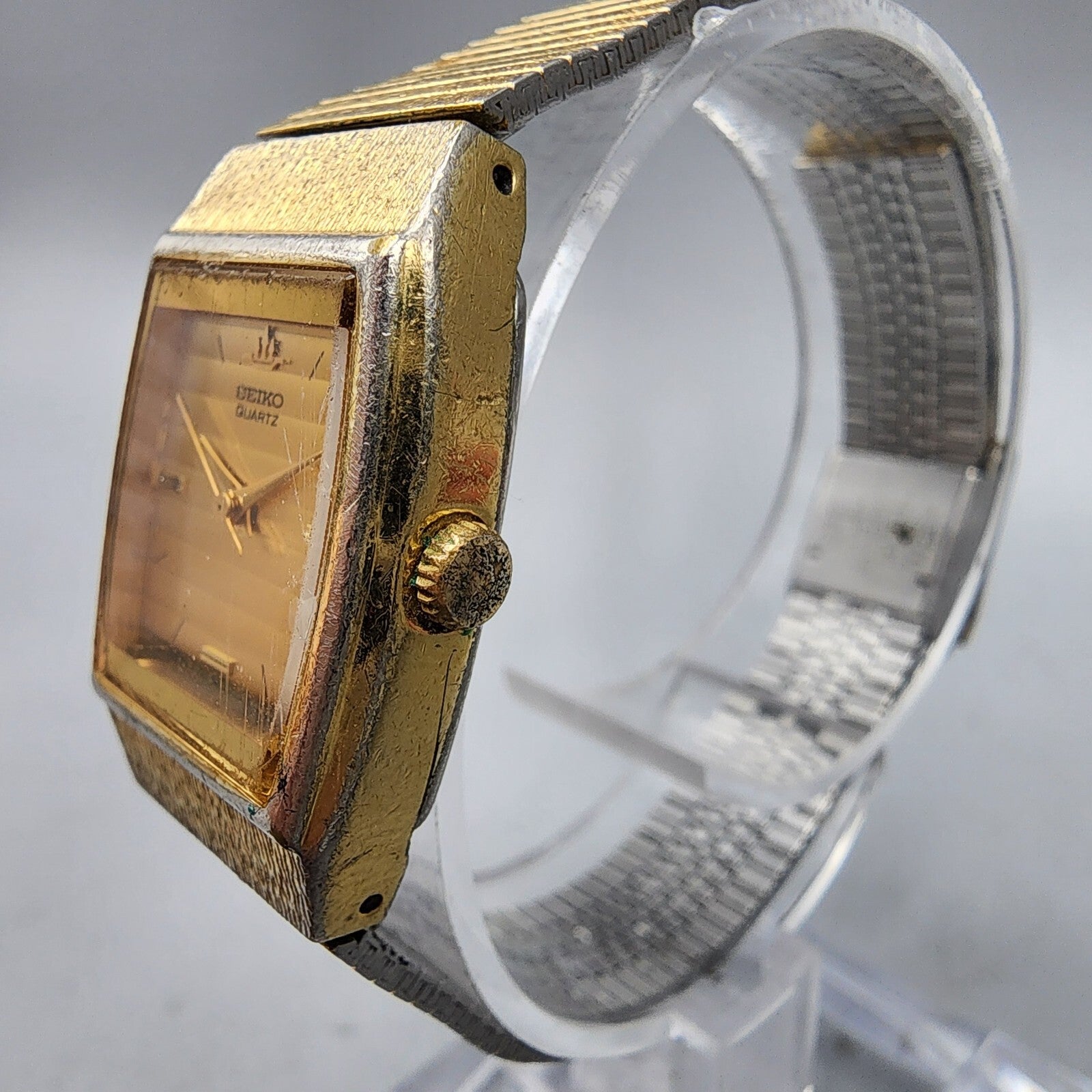 VTG Seiko Watch Women 20mm Gold Dial Gold Tone 8Y21-5000 Tonneau New Battery