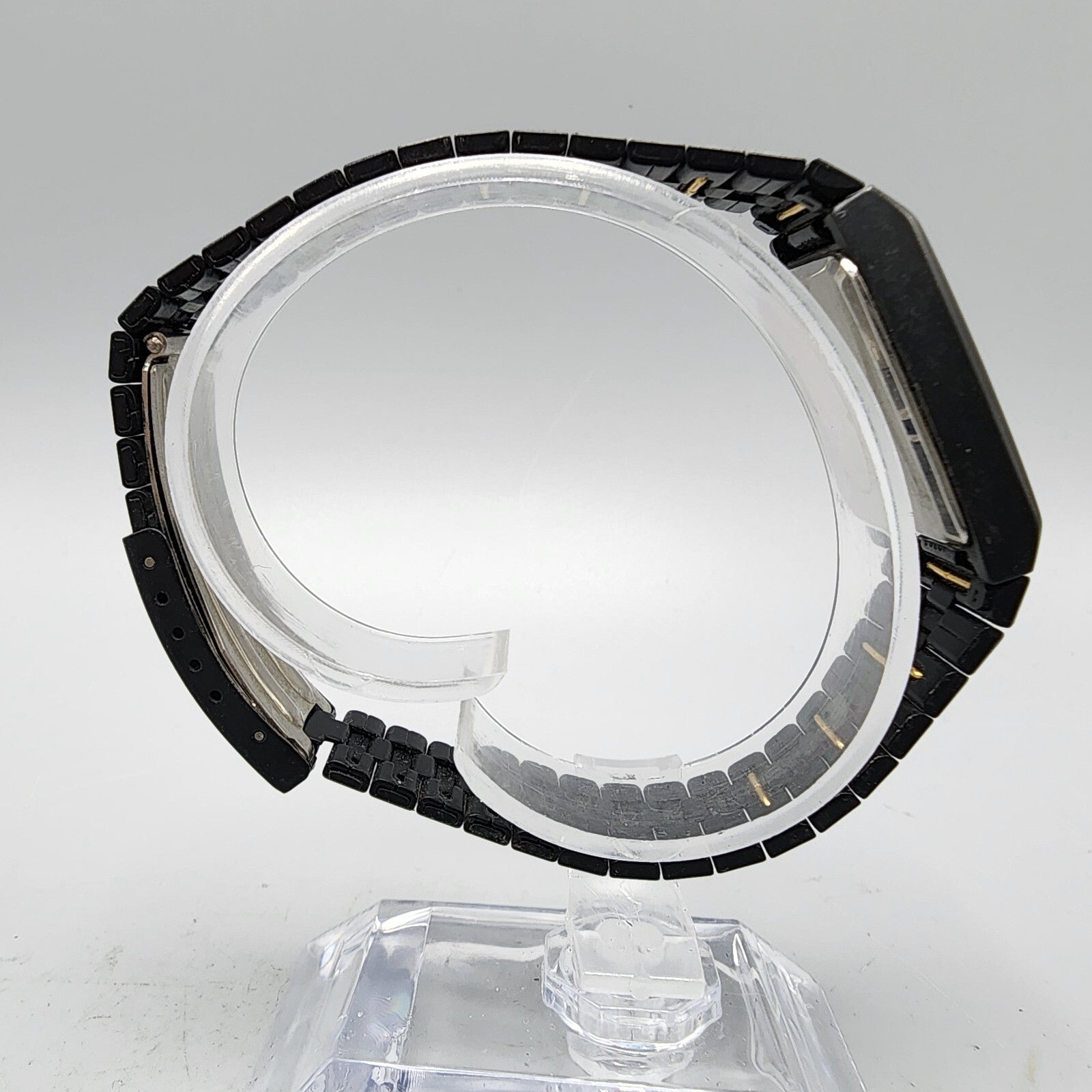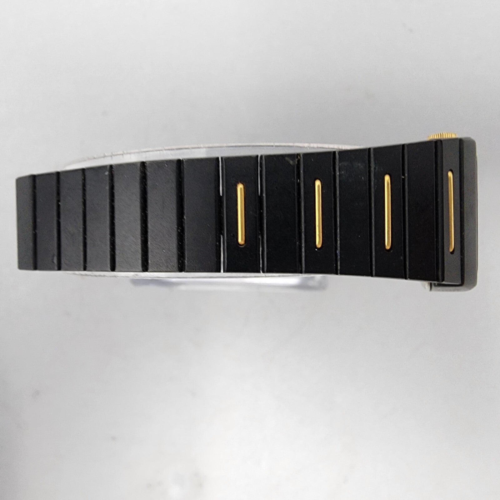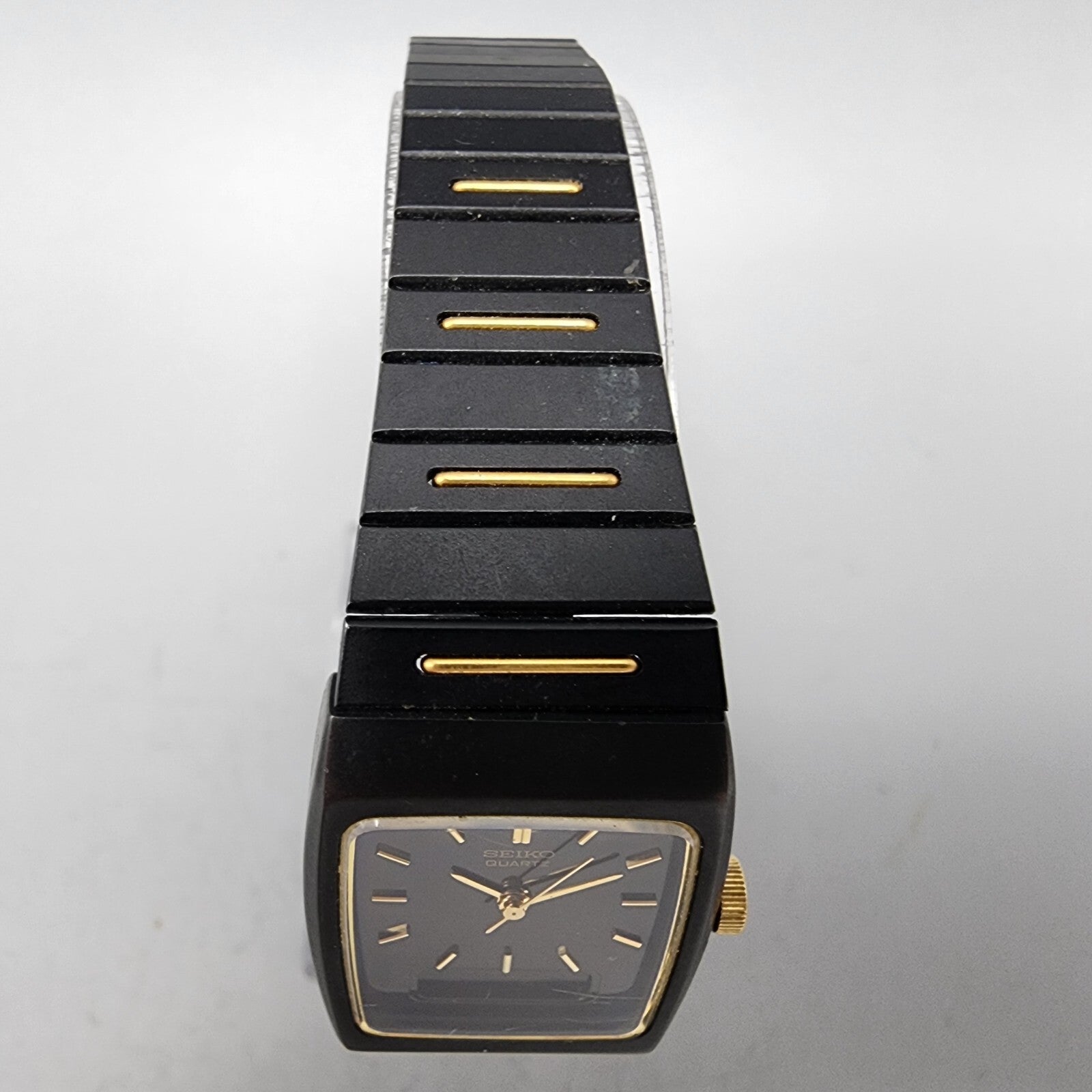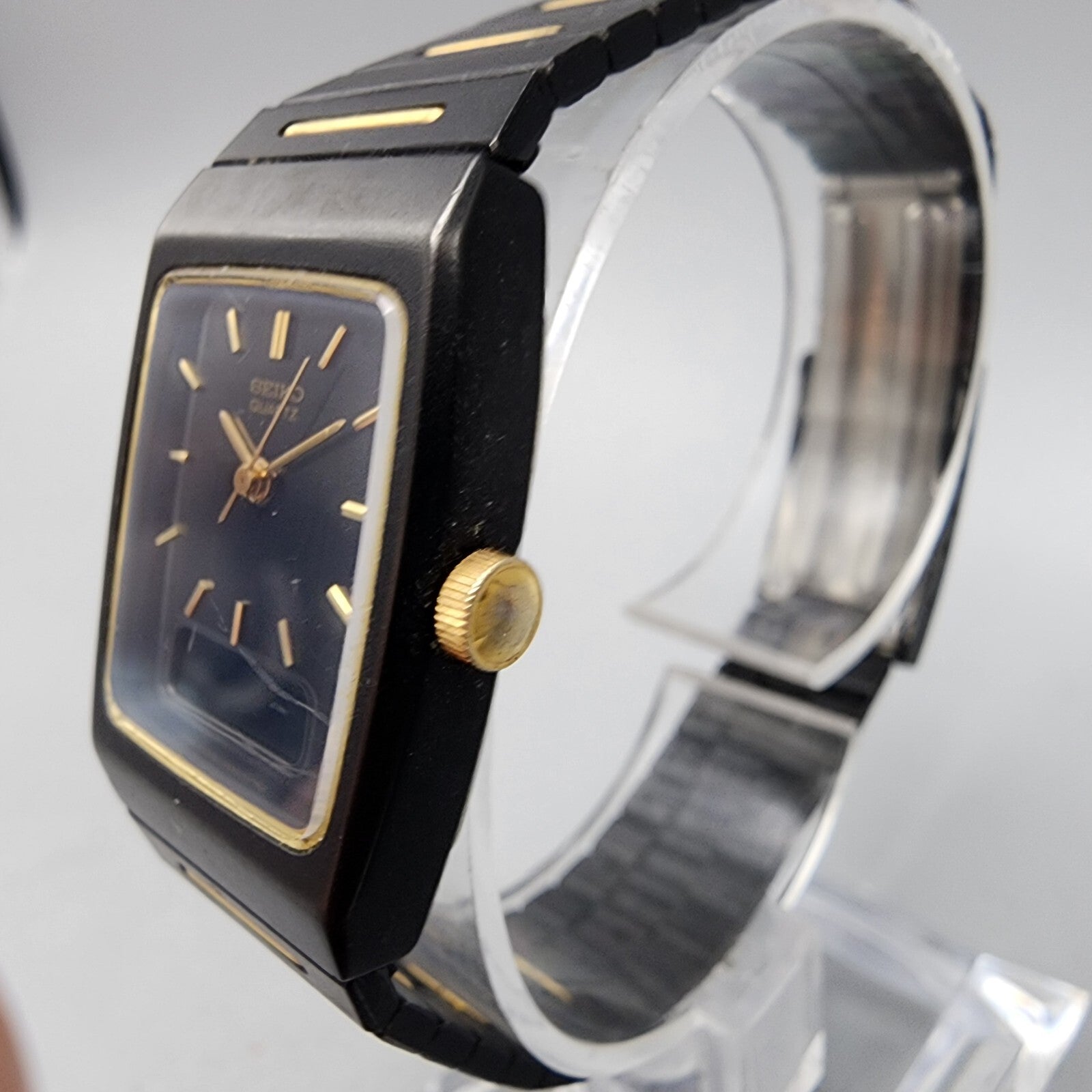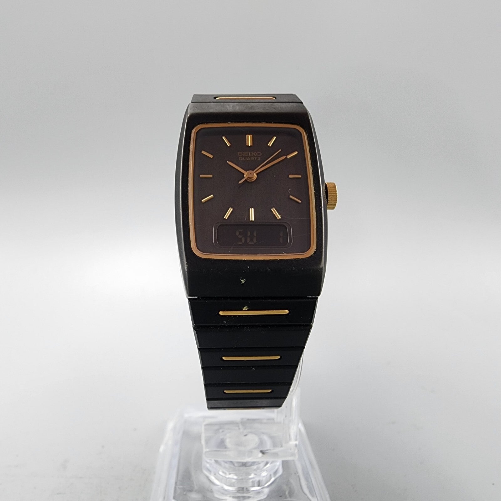 VTG Seiko Watch Women 22mm Analog Digital Black Gold Tone Rectangle New Battery