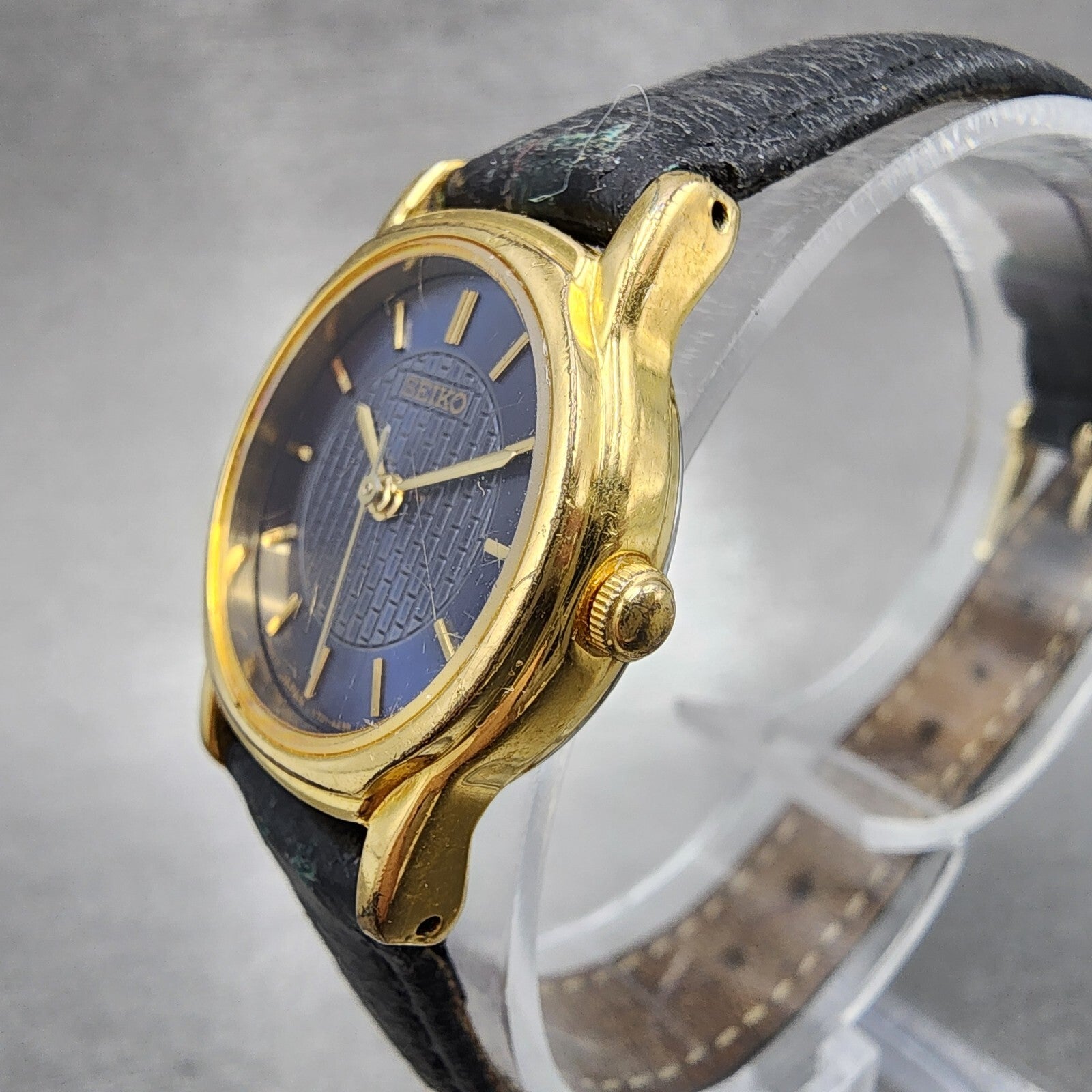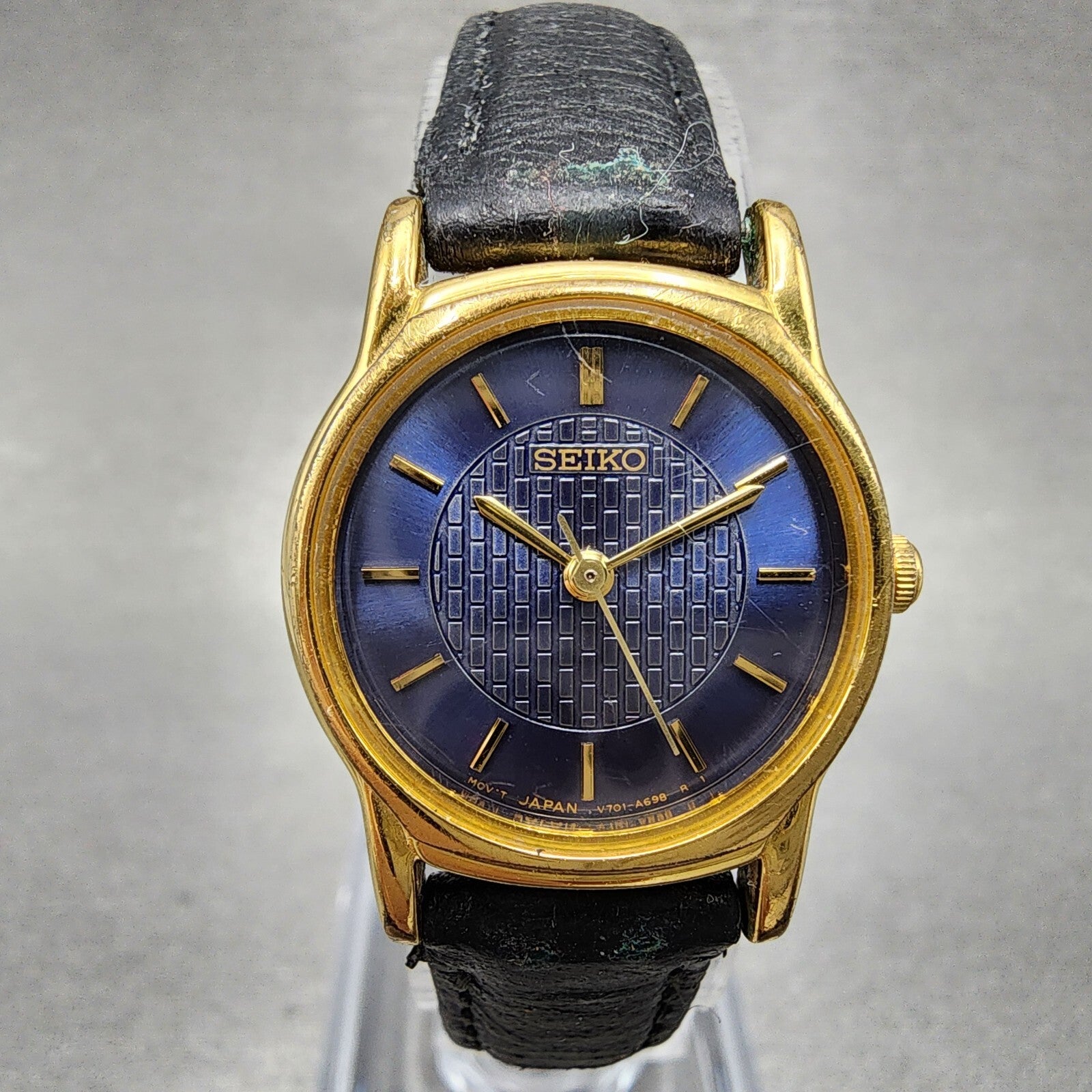 VTG Seiko Watch Women 22mm Blue Dial Gold Tone Round V701-A110 New Battery