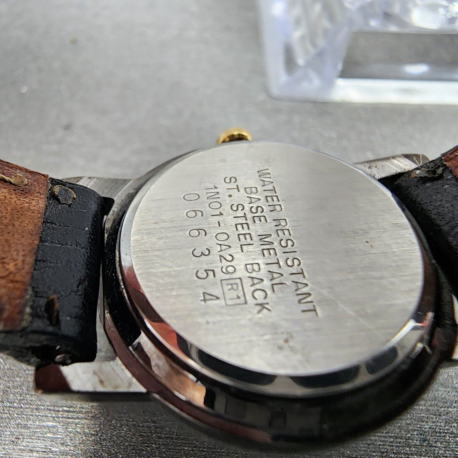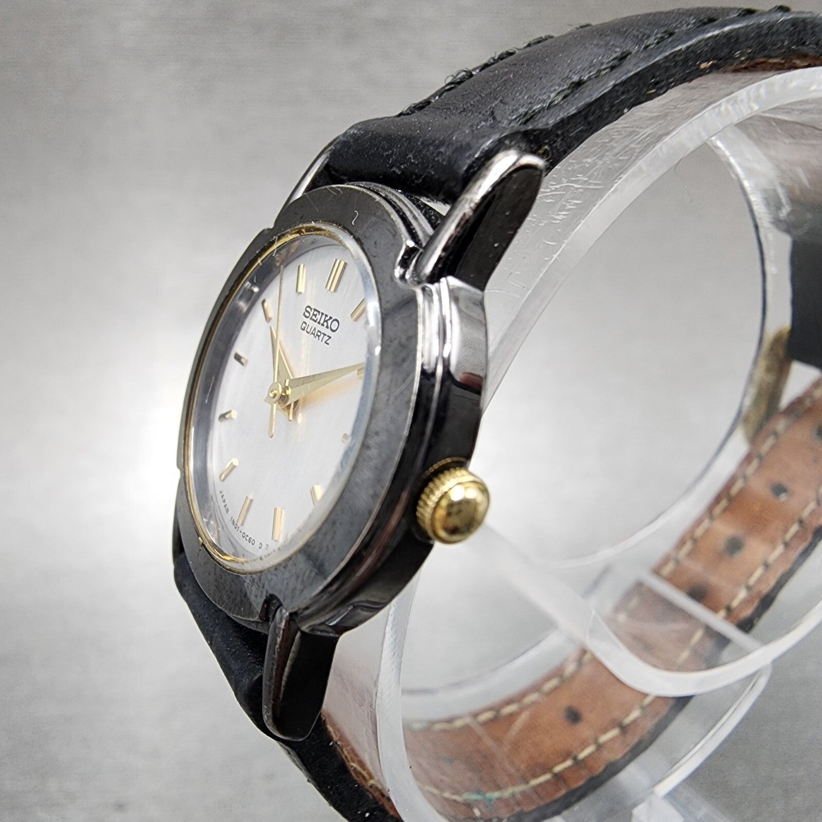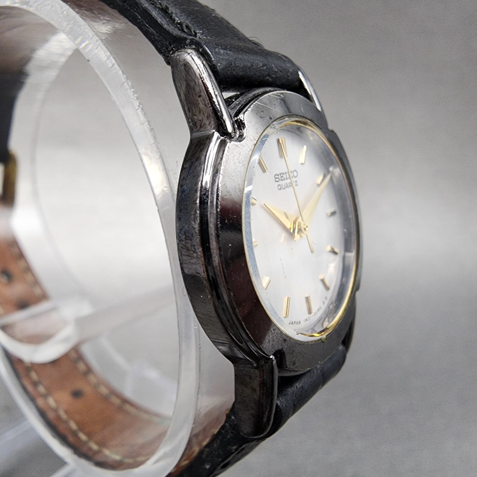 VTG Seiko Watch Women 22mm Silver Dial Black Tone Round 1N01-0A29 New Battery