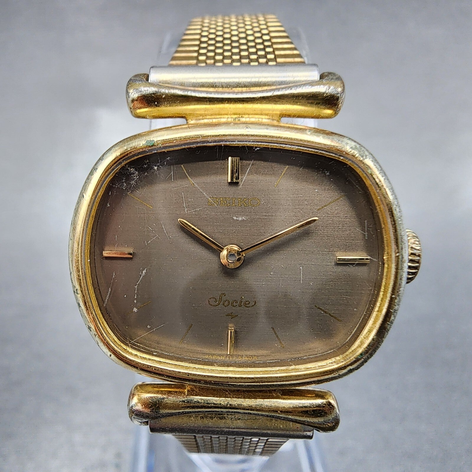 VTG Seiko Watch Women 25mm Brown Dial Gold Tone Rectangle 11-5020 New Battery