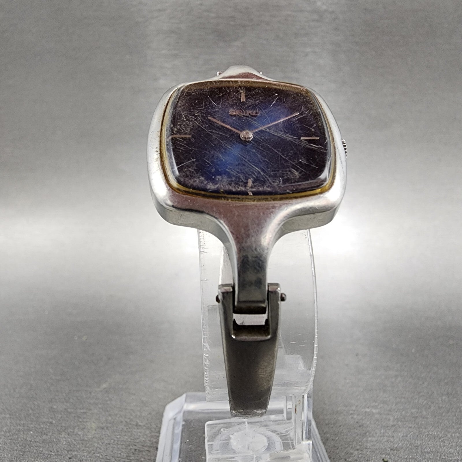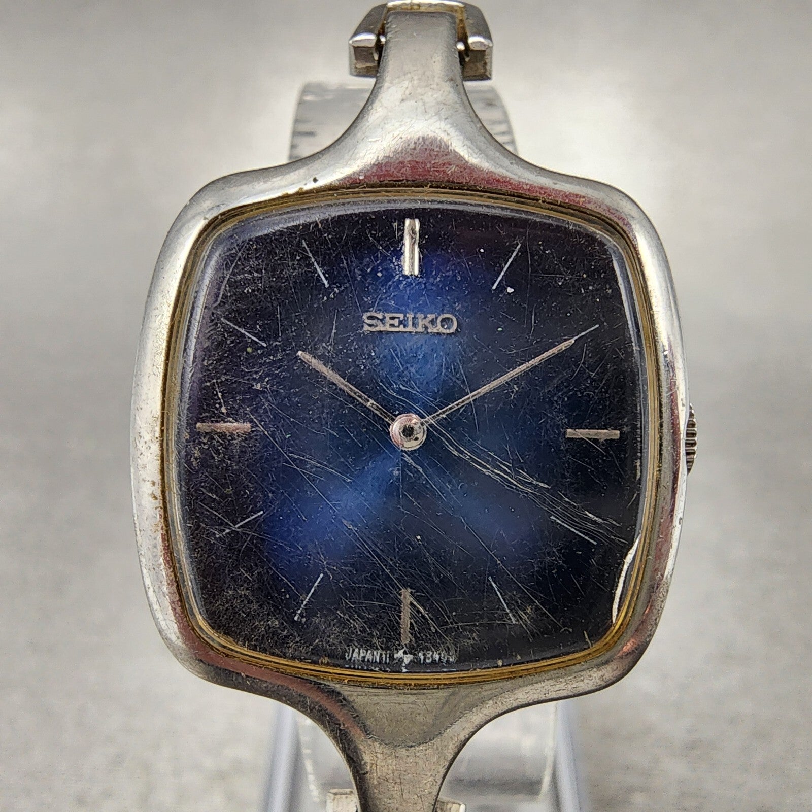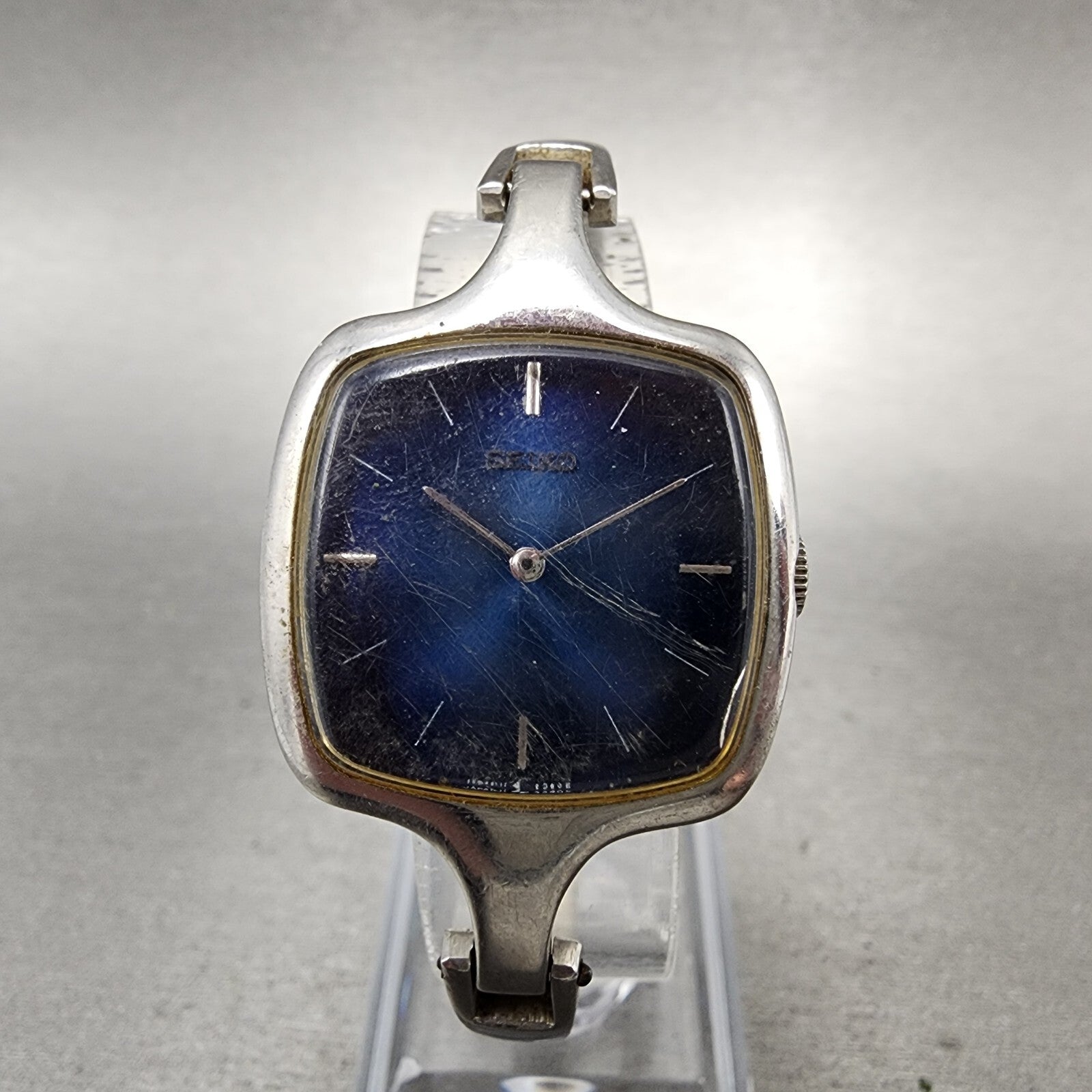 VTG Seiko Watch Women 27mm Blue Dial Rectangle Silver Tone 11-8339 PARTS
