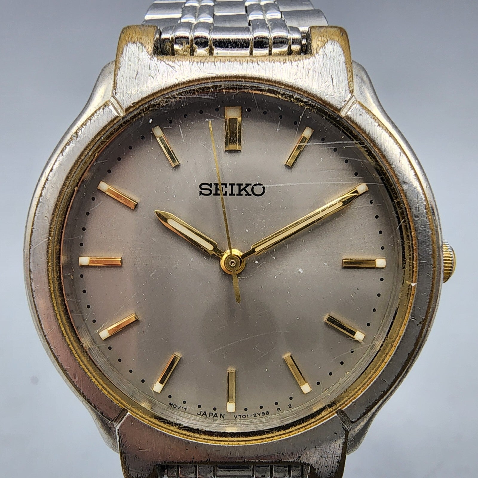 VTG Seiko Watch Women 32mm Gray Dial Silver Tone Round V701-2B50 New Battery