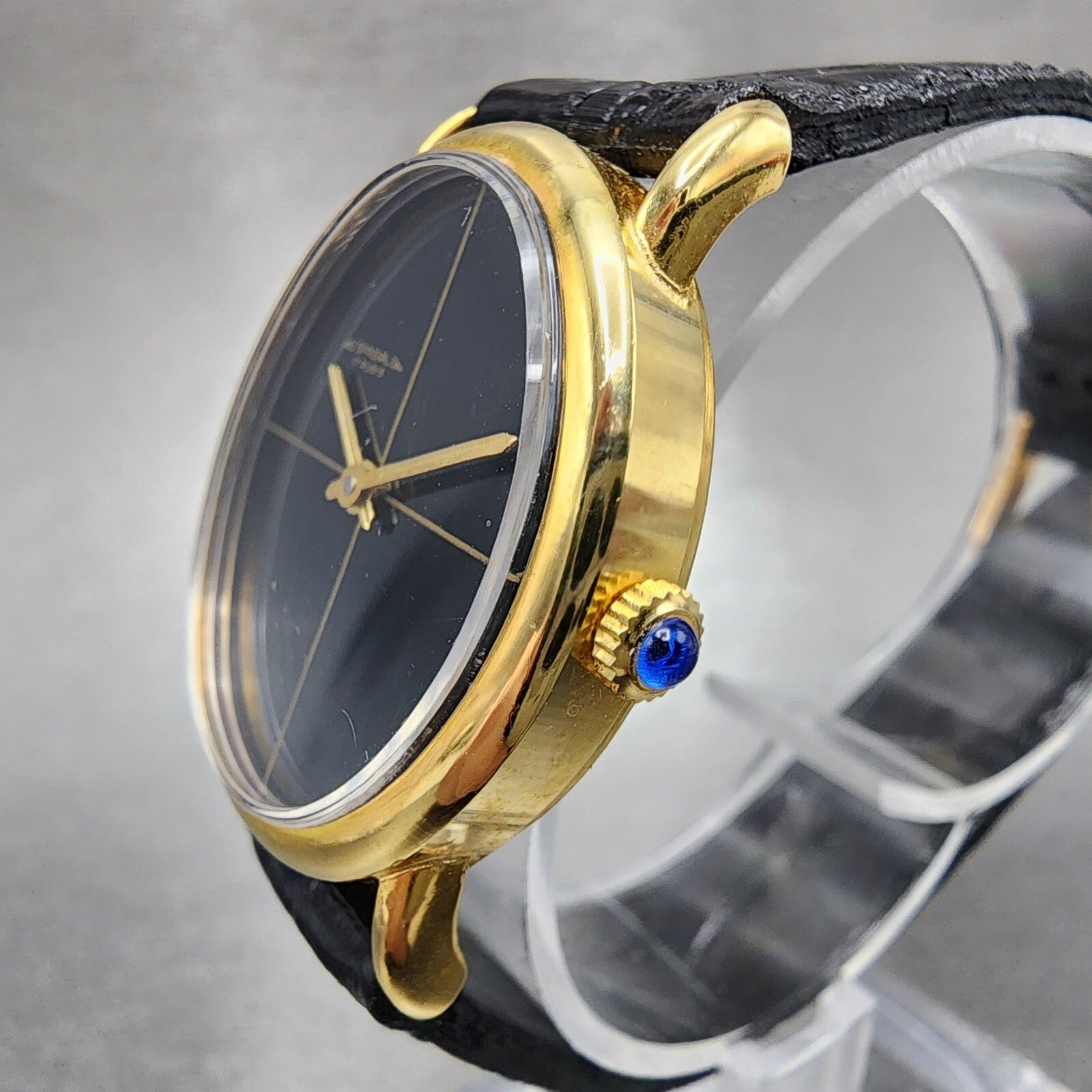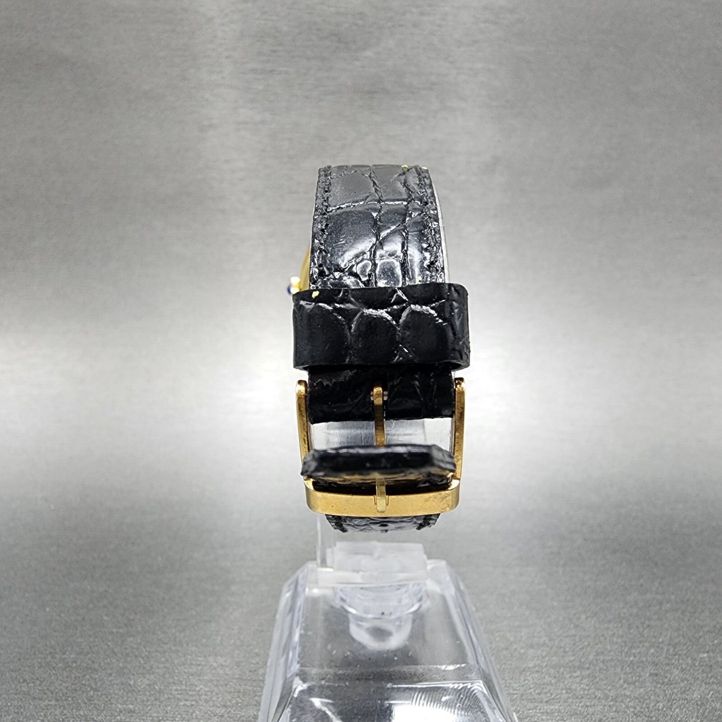 VTG Spazial Watch Women 26mm Black Dial Gold Tone Oval Manual Wind Runs