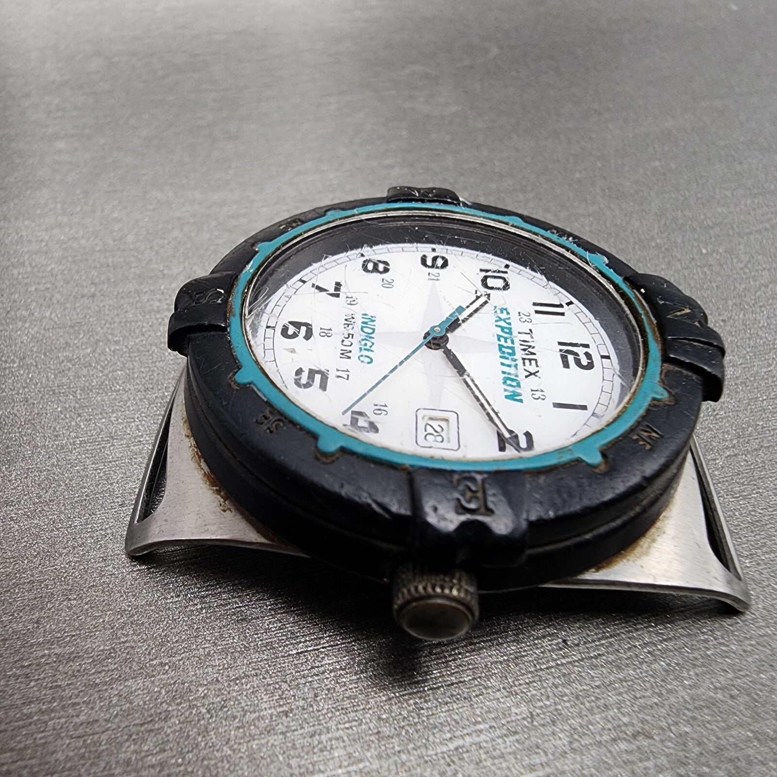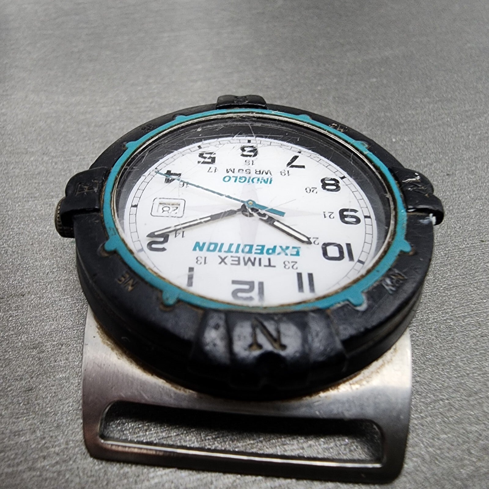 VTG Timex Expedition Watch Men White Dial Silver Tone Date Indiglo 1999 New Batt