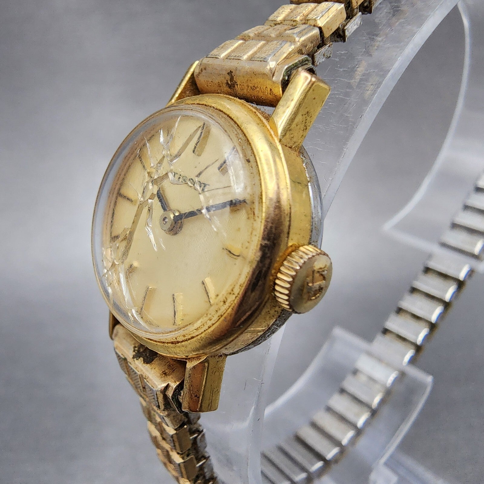 VTG Tissot Watch Women 20mm Gold Dial Gold Plated Round Manual Wind Runs