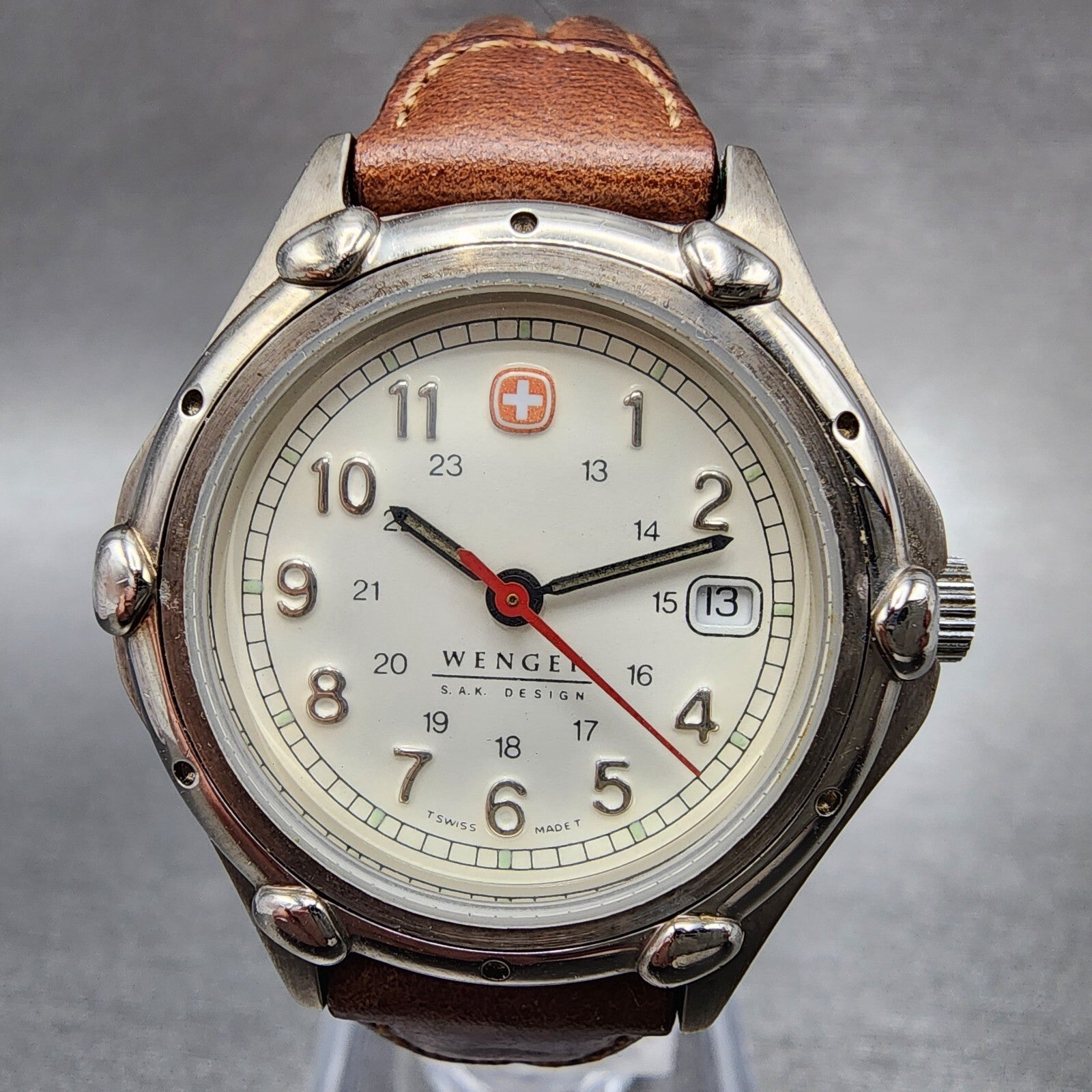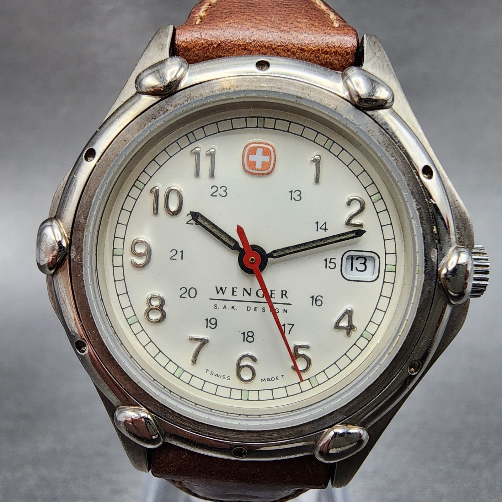 Wenger SAK Design Watch Women 29mm White Dial Silver Tone Date Round New Battery