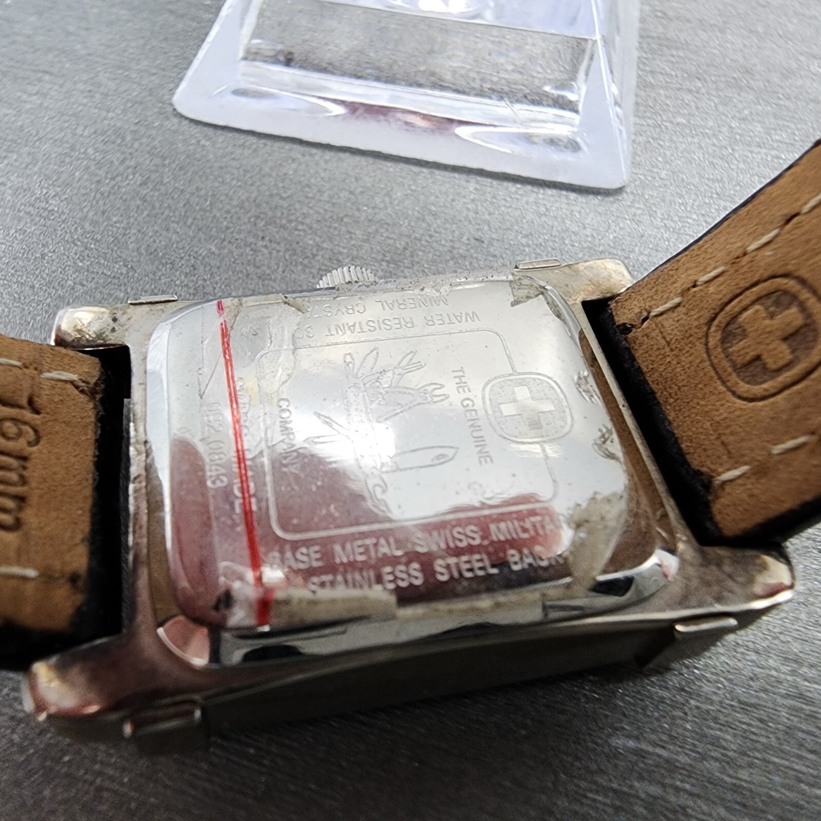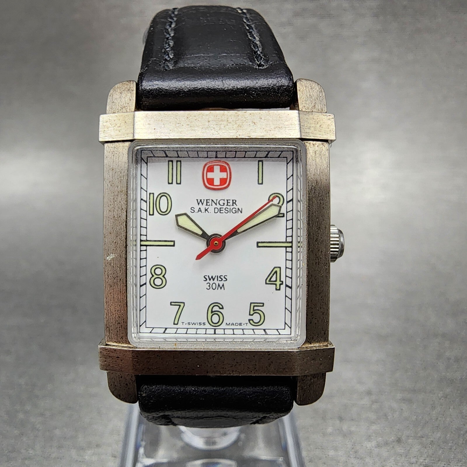 Wenger SAK Tank Watch Women 23mm White Dial Steel Date Rectangle New Battery