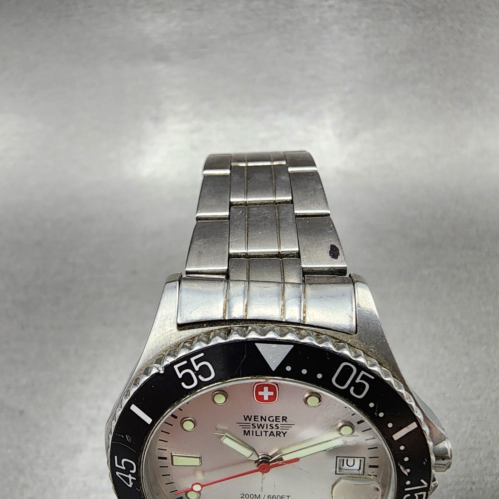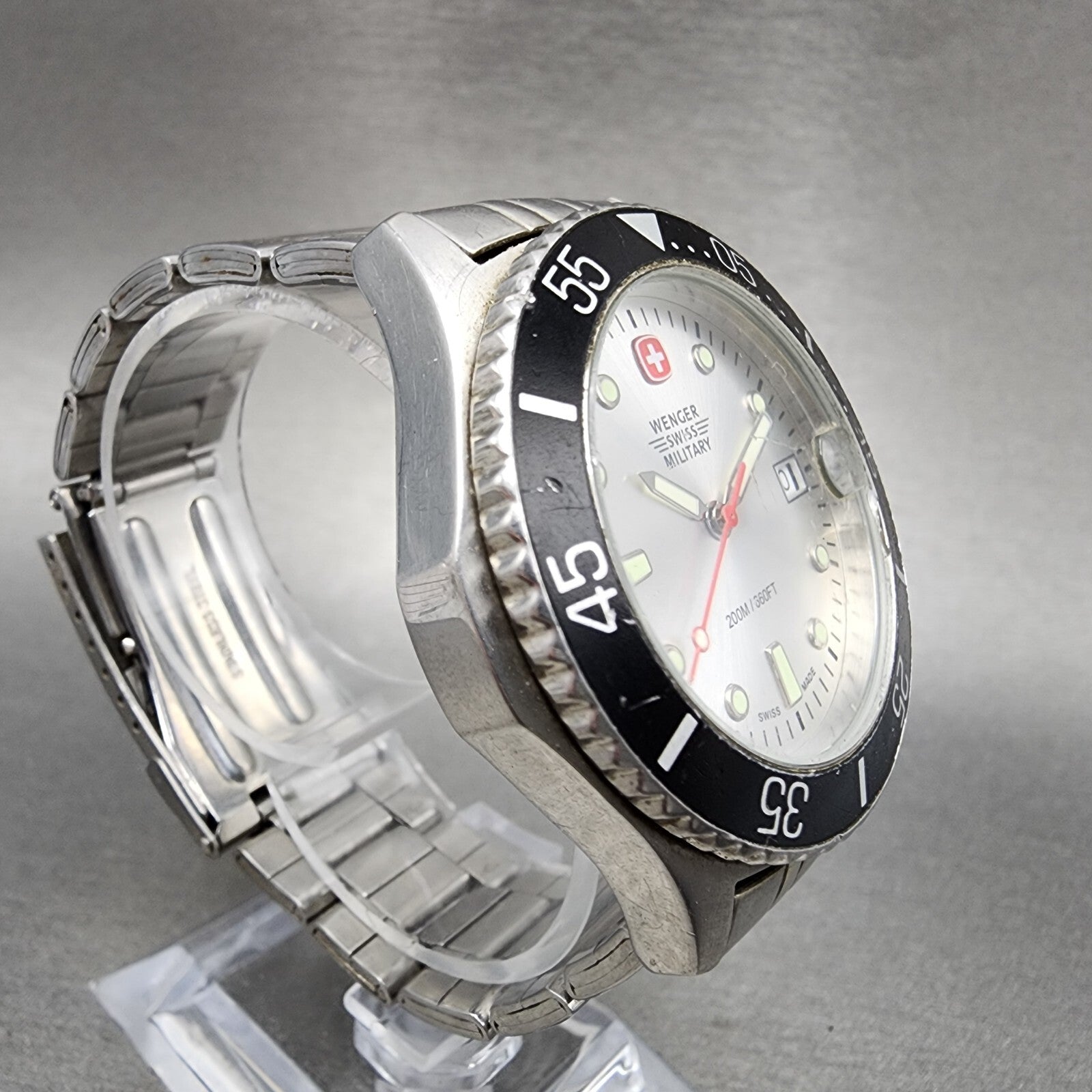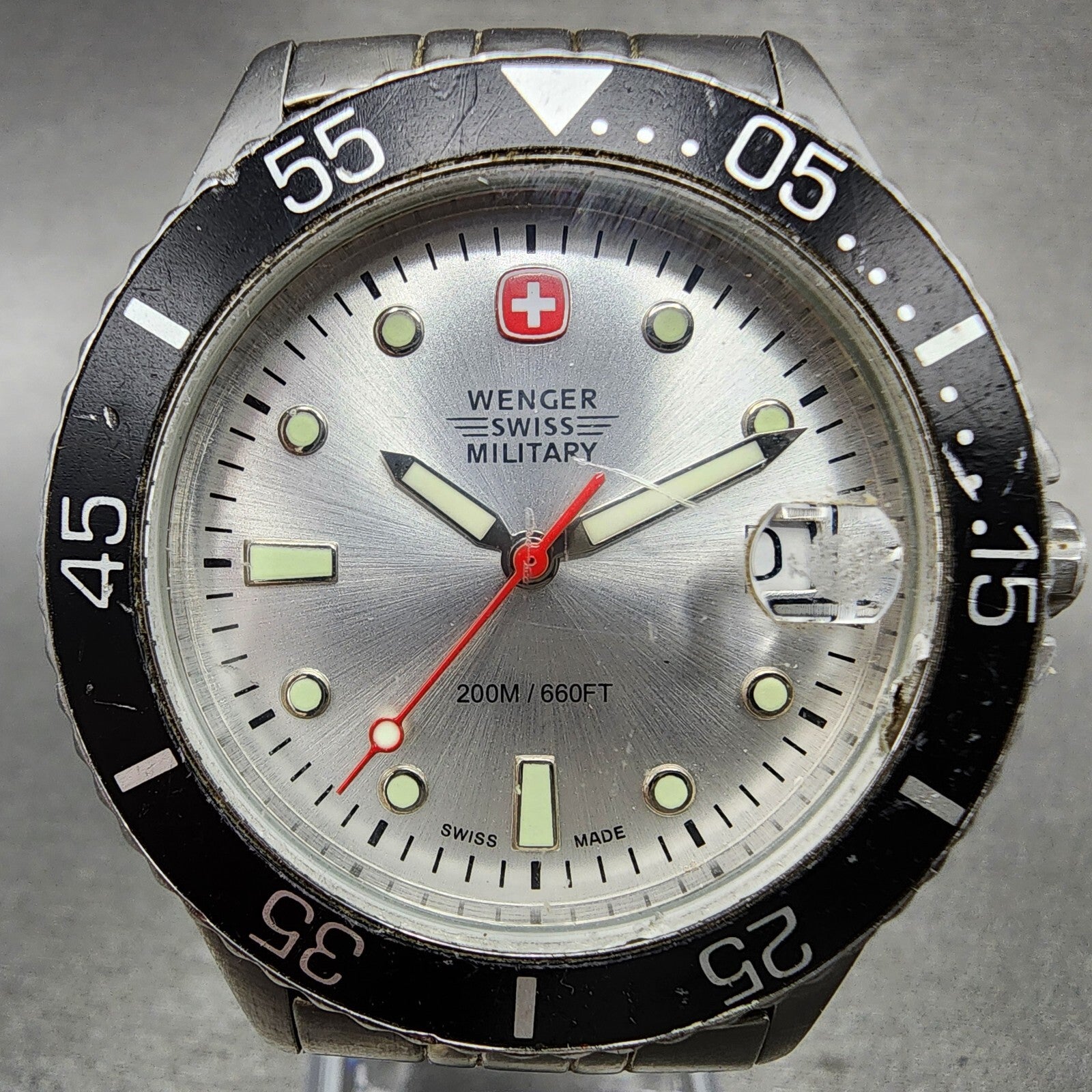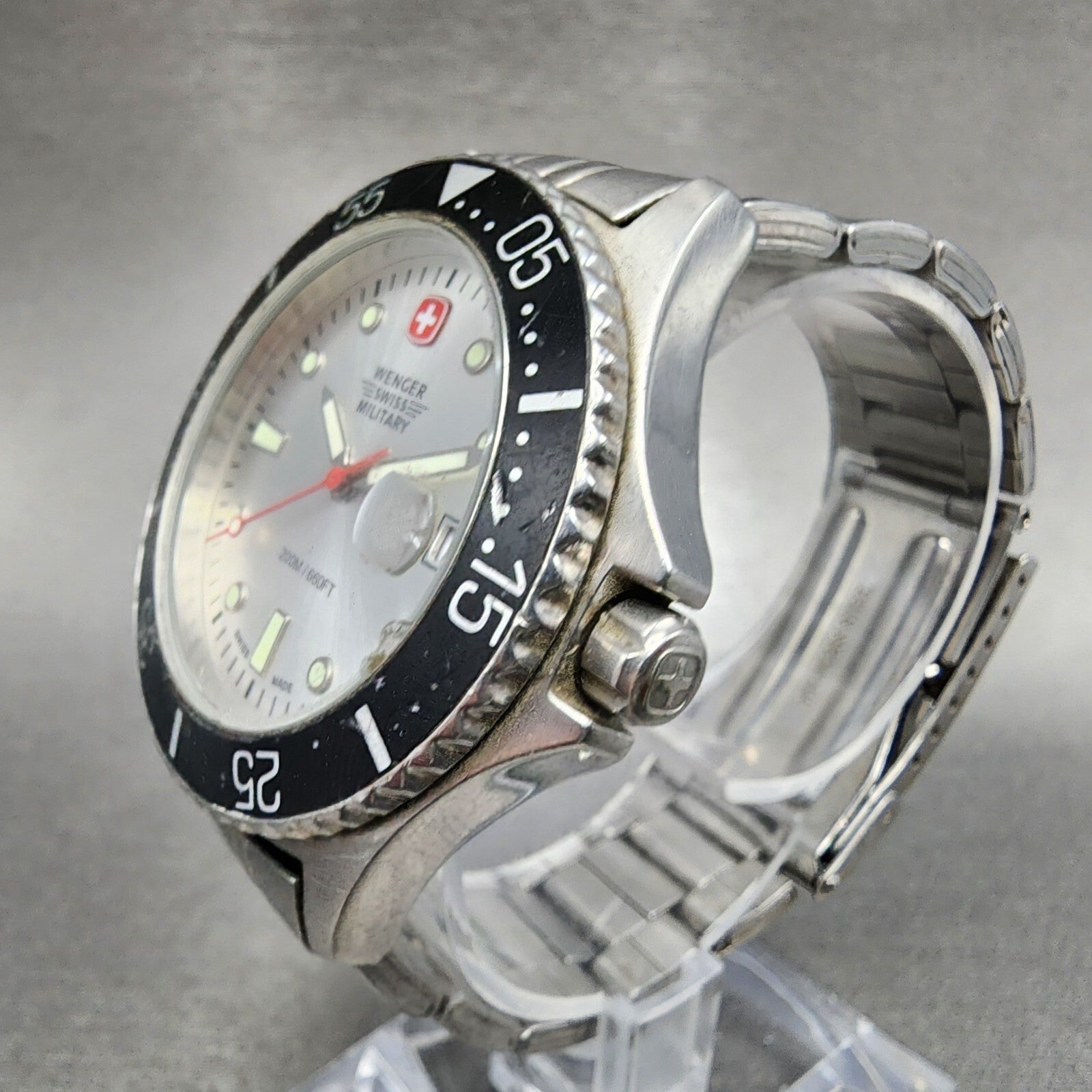 Wenger Swiss Military Dive Watch Men 39mm Silver Dial Steel Date Round New Batt