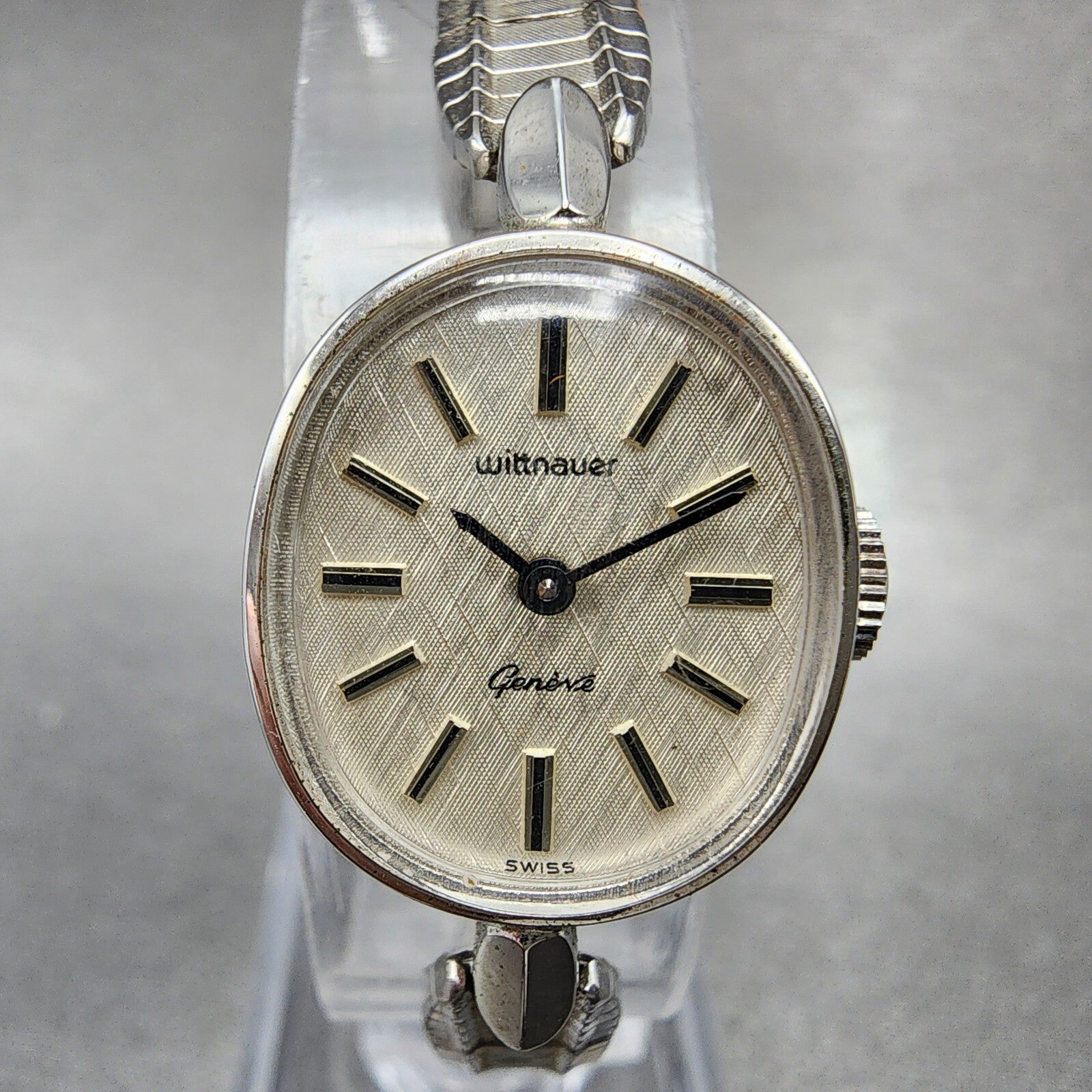 Wittnauer Geneve Watch Women 17mm Silver Dial Silver Tone NOS Oval Manual Wind