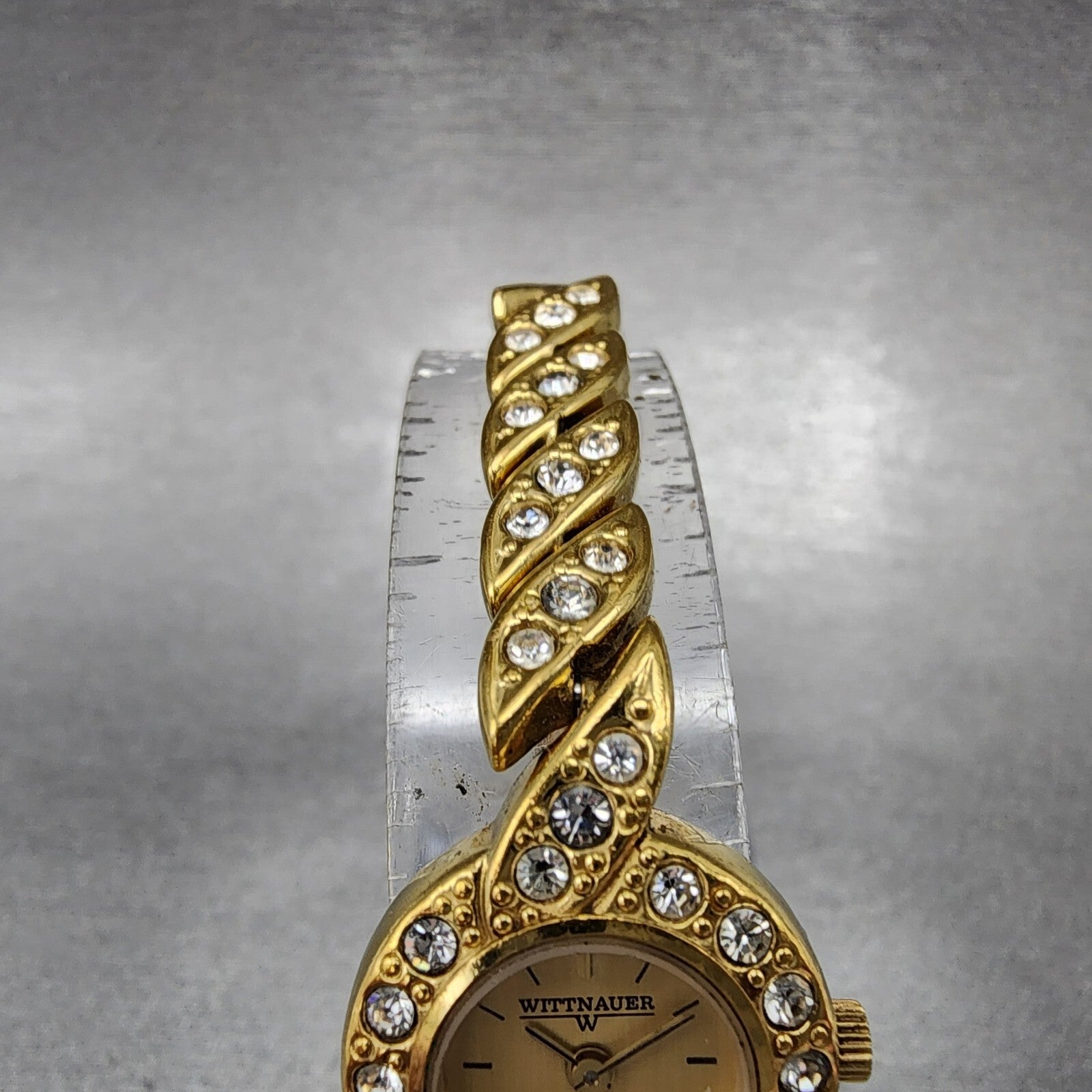 Wittnauer Watch Women 19mm Gold Dial Gold Tone Round Crystal Accents New Battery